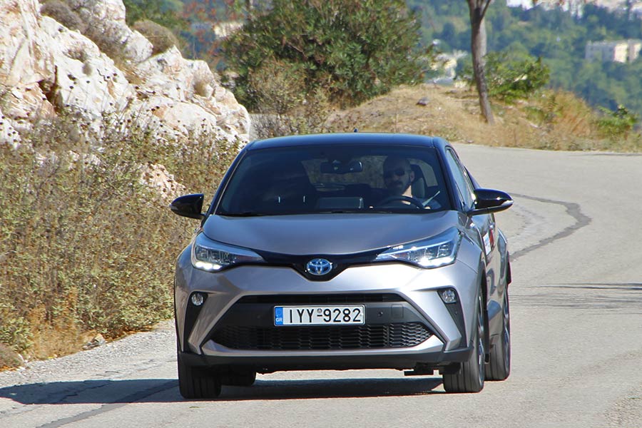 Το C-HR μεταφέρει το δυναμισμό της σχεδίασης στο δρόμο, δίχως να αμελεί πως πρώτη προτεραιότητα είναι η άνεση. Η ανάρτηση είναι σφιχτή μεν, όμως η ποιότητα κύλισης καταφέρνει να κρατά εκτός το μεγαλύτερο μέρος παρασιτικών θορύβων και κραδασμών, επιδεικνύοντας παράλληλα εξαιρετικά αντανακλαστικά σε απότομες μεταφορές φορτίου. Το ESP παρακολουθεί διακριτικά, όμως θα ήθελες λίγο πιο γρήγορο τιμόνι και πιο σαφή αίσθηση από το πεντάλ των φρένων, που έχει και την ανάκτηση ενέργειας να μεσολαβεί. Τα ελαστικά με τις 18άρες ζάντες δεν ακούγονται ιδιαίτερα, ούτε το μοτέρ σε κανονικές συνθήκες. Όταν πιεστεί ή λειτουργεί για τη φόρτιση της μπαταρίας, πάντως, «σπάει» την ηχομόνωση. Δεδομένης της κίνησης μόνο εμπρός και των ασφάλτινων ελαστικών, οι εκτός δρόμου αναζητήσεις καλό είναι να περιορίζονται σε βατούς χωματόδρομους.