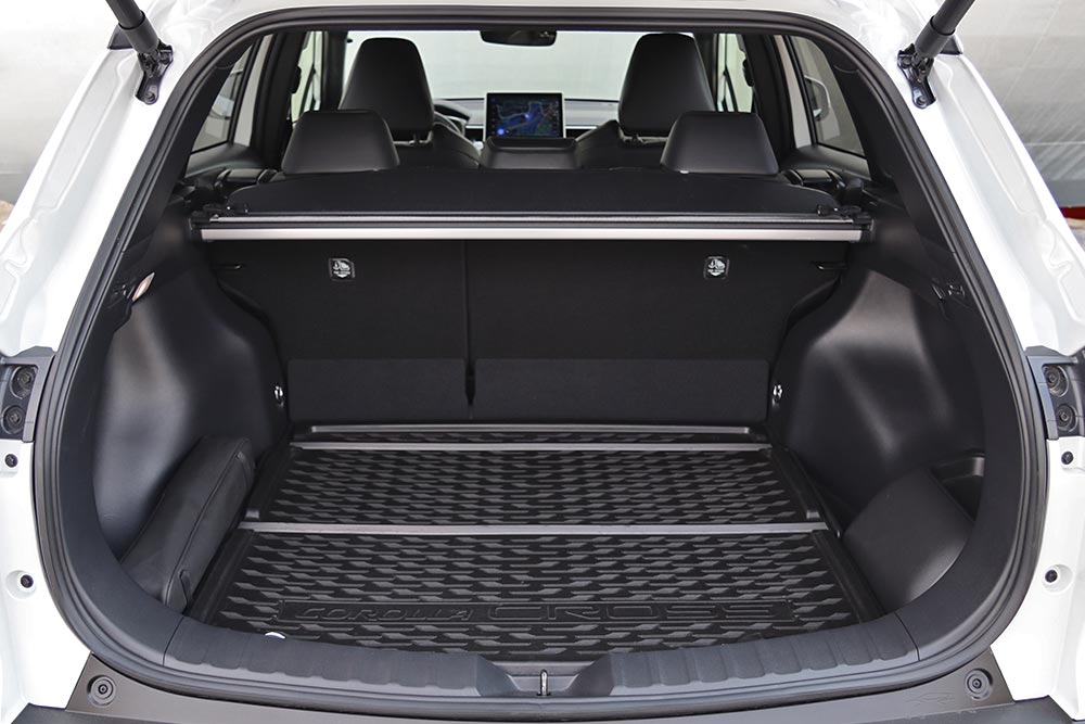 Ο οδηγός του Corolla Cross θα βρει εύκολα την κατάλληλη θέση οδήγησης, ενώ όπως και οι υπόλοιποι επιβάτες κάθεται πιο ψηλά από ένα κλασικό χάτσμπακ. Επίσης τα πολλά παράθυρα ευνοούν την ορατότητα, η οποία είναι με διαφορά καλύτερη έναντι του C-HR. Καλύτερο από το C-HR είναι και σε χώρους, χάρη στην αύξηση των διαστάσεων (πλην του μεταξονίου). Έτσι στο πίσω μέρος της καμπίνας με το χαμηλό κεντρικό τούνελ θα βολευτούν πιο εύκολα δύο ή και τρία άτομα (ανάλογα τη σωματικής τους διάπλασης). Όμως οι χώροι του είναι μικρότεροι από άλλων μικρομεσαίων SUV, αφού είναι παρόμοιοι με ευρύχωρων μικρών SUV. Το ίδιο ισχύει και για το πορτ μπαγκάζ των 390 λτ. (425 λτ. το 2WD), όταν σε ανταγωνιστικά C-SUV είναι το λιγότερο 500 λίτρα.