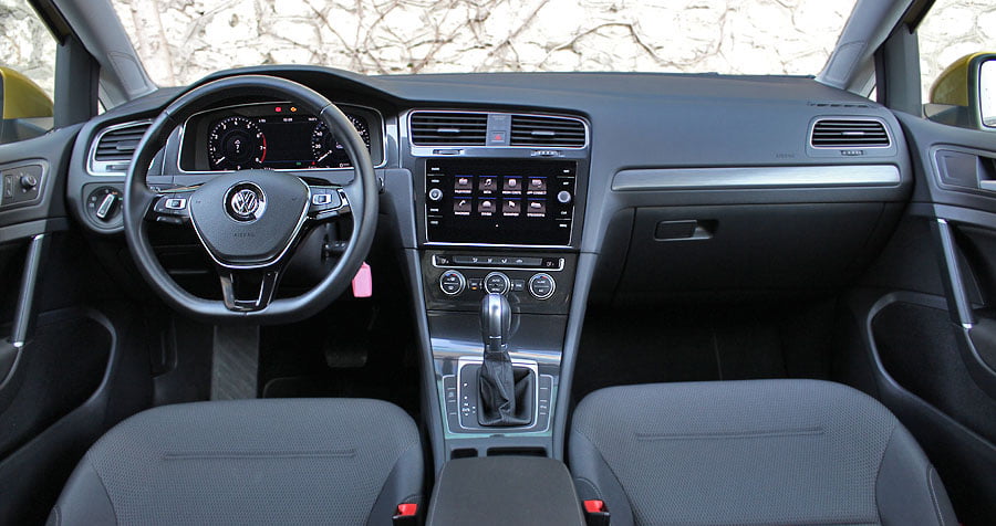 Στον θάλαμο των επιβατών του Golf δεν υπάρχει κάποιο αρνητικό στοιχείο, αφού όλα είναι σωστά «τακτοποιημένα». Μόνο η σχεδίαση δεν έχει κάποιο ξεχωριστό στοιχείο, ωστόσο αυτό είναι κάτι υποκειμενικό και εν τέλει λειτουργεί υπέρ της πρακτικότητας και της εργονομίας. Ο οδηγός του Golf θα βρει εύκολα την κατάλληλη θέση και θα προσαρμοστεί γρήγορα με τις θέσεις και τις λειτουργίες των διαφόρων χειριστηρίων. Το βλέμμα εστιάζει κυρίως στη μεγάλη οθόνη αφής των 8 ιντσών του συστήματος infotainment Composition Media (στάνταρ στις εκδόσεις Generation και Highline) και στον πλήρως ψηφιακό και διαδραστικό πίνακα οργάνων Active Info Display με οθόνη TFT 12,3 ιντσών (έκδοση Highline). Την άρτια εικόνα σε επίπεδο κατασκευής ενισχύει το παχύ αφρώδες υλικό που καλύπτει ολόκληρο το ταμπλό, η προσεγμένη συναρμογή και το φινίρισμα. Σε επίπεδο χώρων, το Golf είναι πολύ άνετο τόσο στο εμπρός τμήμα της καμπίνας όσο και στο πίσω, όπου οι φιλοξενούμενοι απολαμβάνουν πολύ χώρο για τα πόδια τους και αρκετό σε ωφέλιμο πλάτος και ύψος. Πλήρως εκμεταλλεύσιμο και με μεγάλο άνοιγμα είναι το πορτ μπαγκάζ των 380 λίτρων.