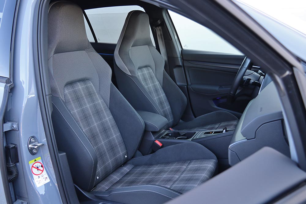 Πέρα από τις σπορ εκφάνσεις, το ποιόν της καμπίνας παραμένει όπως γνωρίζαμε από την 8η γενιά Golf: εξαιρετικά υλικά, τεκτονική συναρμογή, καλή εργονομία (τα χειριστήρια αφής θέλουν αρκετή εξοικείωση) και πολύ ικανοποιητικοί χώροι για τέσσερις επιβάτες (ο πέμπτος μπορεί να «σφιχτεί» κάπως, ανάλογα και τον σωματότυπο), μετά του αναλόγου πορτμπαγκάζ. Στα 374 λίτρα, ο χώρος αποσκευών κινείται στα στάνταρ της κατηγορίας, επωφελούμενος από την κανονικότητα του σχήματος και το σχετικά χαμηλό κατώφλι.
