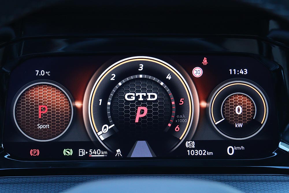 Οι τεχνικοί της VW το παρακάνανε στην προσπάθεια τους να μακιγιάρουν την ντίζελ χροιά του μοτέρ, με το Soundaktor να παράγει έναν έντονα μπάσο ήχο από τα ηχεία, που κάποιες φορές θυμίζει εξατμισωμένο Scania. Εννοείται καλύτερα από το να ακουγόταν το χαρακτηρισμό κροτάλισμα της αυτανάφλεξης, απλά λίγο υπερβολικό. Η κατανάλωση, αντίθετα, μόνο ικανοποιημένο σε αφήνει. Τα 8,4 λίτρα/100 χλμ. μπορεί να είναι τσιμπημένα για μοτέρ πετρελαίου, ωστόσο για τη δυναμική του GTD κρίνονται ως απολύτως λογικά. Εξάλλου με νορμάλ χρήση, η μέση τιμή της πέφτει και κάτω από τα 6 λίτρα/100 χλμ.