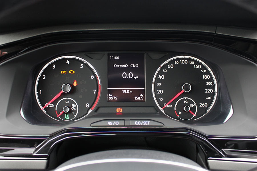 Στο εσωτερικό του Polo TGI οι διαφορές σε σχέση με τις αμιγώς βενζινοκίνητες εκδόσεις εντοπίζονται μόνο στον πίνακα οργάνων. Εκεί στη θέση της θερμοκρασίας του κινητήρα έχει τοποθετηθεί η ένδειξη για την πληρότητα των δεξαμενών του φυσικού αερίου. Επίσης, στην ψηφιακή οθόνη αναγράφονται επιπλέον πληροφορίες για την κατανάλωση του CNG, την αυτονομία και την ποιότητα του εν λόγω καυσίμου. Στοιχεία που μπορεί να δει ο οδηγός μαζί με πάρα πολλές ακόμα πληροφορίες και εφαρμογές στη μεγάλη οθόνη αφής του συστήματος πολυμέσων στην κεντρική κονσόλα.