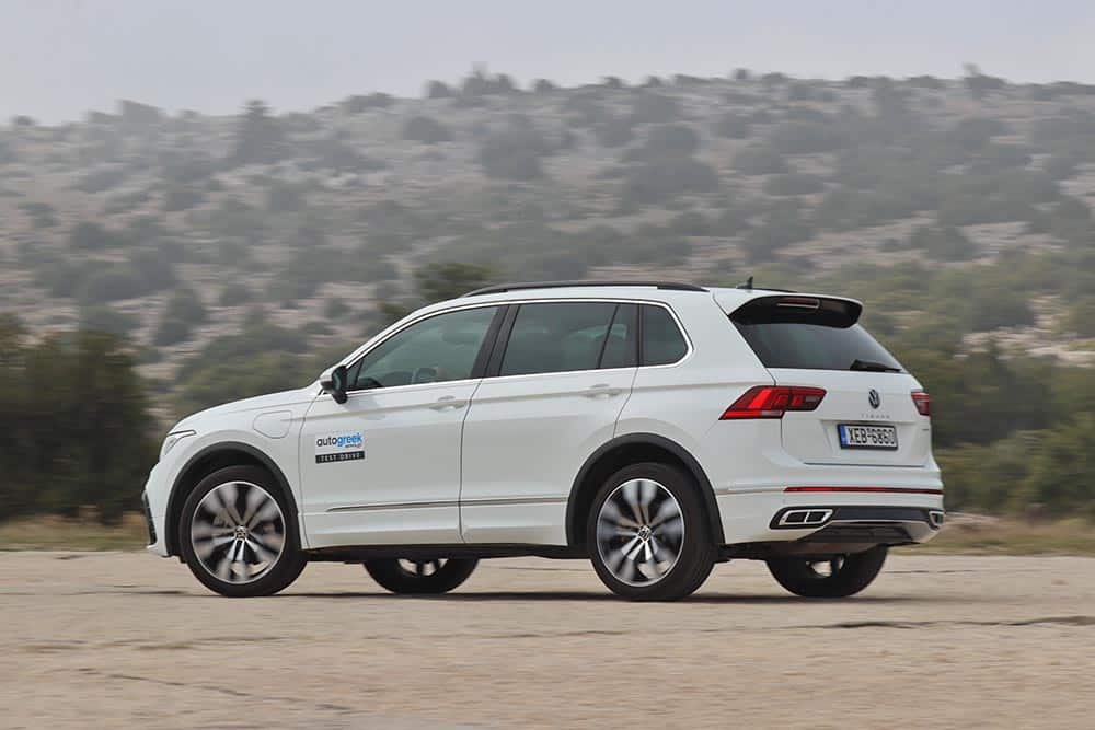 Πολύ καλή αίσθηση θα αποκομίσετε από το VW Tiguan eHybrid και σε δρόμο με στροφές. Η ρύθμιση της ανάρτησης εξασφαλίζει επαρκή πρόσφυση σε κάθε περίσταση, διατηρώντας παράλληλα σε λογικά επίπεδα την κλίση του αμαξώματος. Το τιμόνι δεν το λες ξυράφι, αλλά τουλάχιστον ικανοποιεί το μέσο χρήστη με το βάρος και την αίσθηση που παρέχει. Επιπλέον, τα φρένα είναι ισχυρά κι ακούραστα, παρά τη μάζα που έχουν να διαχειριστούν. Τέλος, η αυξημένη απόσταση από το έδαφος επιτρέπει στo Tiguan να κινείται άνετα σε δρόμους με κακό ανάγλυφο, βγάζοντας ασπροπρόσωπο τον οδηγό. Αρκεί ο τελευταίος να θυμάται ότι οδηγεί ένα προσθιοκίνητο SUV με ασφάλτινα ελαστικά και να μην το παρακάνει.