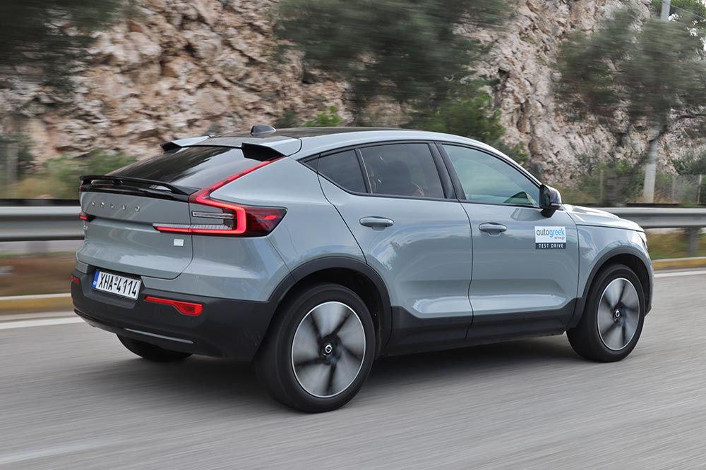 Η μεταφορά της κίνησης από τον εμπρός άξονα στον πίσω βελτίωσε την οδική συμπεριφορά του C40 Recharge, χαρακτηριστικό που γίνεται άμεσα αισθητό σε πιο πιεσμένους ρυθμούς και πιο έντονες επιταχύνσεις. Πριν με την κίνηση μπροστά παρατηρούνταν ένα «ψάρεμα» του τιμονιού και ελάφρωμα του εμπρός μέρους όταν ο οδηγός πατούσε απότομα το πεντάλ του γκαζιού, λόγω της ακαριαίας δύναμης. Τώρα με την κίνηση πίσω μη φανταστείτε ότι το C40 Recharge θα σπινάρει και προσφέρεται για πλαγιολισθήσεις, αλλά η δύναμη στο δρόμο περνάει με πιο ομαλό τρόπο, ενώ τα ηλεκτρονικά συστήματα δεν αφήνουν περιθώρια για ατασθαλίες.