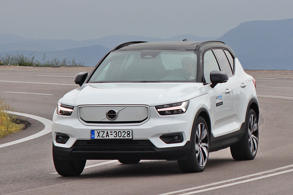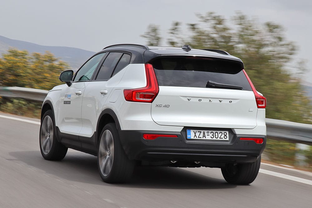 Σε πιο πιεσμένους συνθήκες, οδηγός και φιλοξενούμενοι δεν αντιλαμβάνονται τις γρήγορες ταχύτητες που φτάνει αγόγγυστα το αυτοκίνητο, παρά μόνο μια ώθηση. Παρόλο που δεν θα πάρει κανείς το XC40 Recharge P6 για να πάει να το «στρίψει», το πληθωρικό και πολυτελές SUV δεν θα αρνηθεί στην πίεση. Ακόμα και σε φιδίσιες διαδρομές παραμένει στην προεπιλεγμένη πορεία, χάρη στην αρκετή πρόσφυση που εξασφαλίζουν οι τροχοί (235/45 R20 εμπρός και 255/40 R20 στο αυτοκίνητο της δοκιμής), τις μικρές κλίσεις του αμαξώματος και την αγαστή συνεργασία με τα ηλεκτρονικά συστήματα. Μόνο με βίαιο πάτημα του πεντάλ του γκαζιού και εντός κλειστής στροφής θα εμφανίσει ψήγματα υποστροφής, που και πάλι εξαλείφονται εν τη γενέσει τους. Το σύστημα διεύθυνσης στην επιλογή για πιο βαρύ τιμόνι διαθέτει το απαραίτητο σφίξιμο για όσους το θελήσουν, αν και στην πόλη η ελαφρύτερη επιλογή είναι προτιμότερη. Ένα ακόμα βοήθημα αποτελεί και η επιλογή «off road» που ενεργοποιείται από το infotainment και έχει σκοπό θα αυξάνει την πρόσφυση σε δύσκολα εδάφη και σε απότομες κατηφόρες, με ταχύτητες έως 40 χλμ./ώρα. Να σημειωθεί ότι η απόσταση από το έδαφος είναι 175 χλστ. (έναντι 211 χλστ. στα υπόλοιπα XC40).