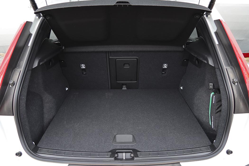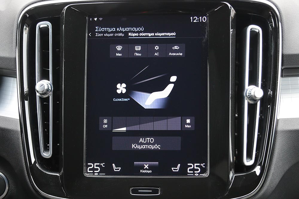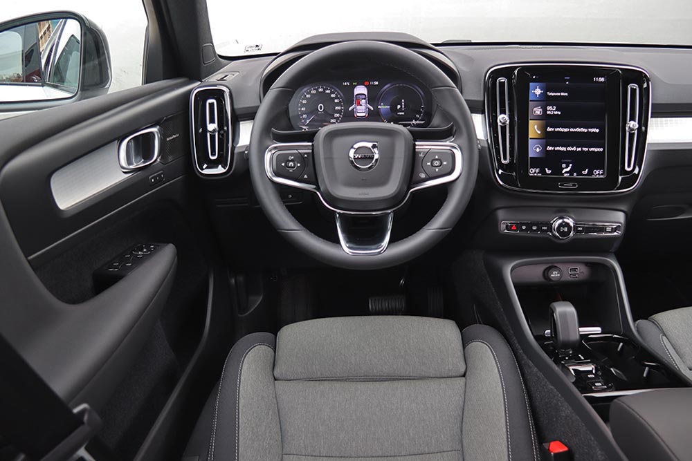 Στο θάλαμο των επιβατών του ανανεωμένου XC40 οι αλλαγές είναι επίσης περιορισμένες και αφορούν μόνο τις νέες επενδύσεις, με πολυτελείς επιλογές χωρίς χρήση δέρματος και με διευρυμένες επιλογές εξατομίκευσης. Σχεδιαστικά παρέμεινε ως είχε, με πολλές ευθείες γραμμές και επίπεδες επιφάνειες, το λιτό ψηφιακό πίνακα οργάνων 12 ιντσών και την κεντρική οθόνη αφής των 9 ιντσών. Σε αυτή είναι ενσωματωμένες όλες οι λειτουργίες του αυτοκινήτου (π.χ. και του κλιματισμού) και χρειάζεται ένα διάστημα προσαρμογής μέχρι ο χρήστης να μάθει το μενού και να το χρησιμοποιεί γρήγορα. Η ποιότητα είναι υψηλού επιπέδου, μέσω της χρήσης μαλακών υλικών στο ταμπλό και στις πόρτες, με την πολύ γεροδεμένη συναρμογή και το προσεγμένο φινίρισμα. Στον τομέα των χώρων, το XC40 είναι σε θέση να εξυπηρετήσει εύκολα τέσσερα άτομα, ανεξαρτήτως αναστήματος. Ένας ακόμα στη μέση του πίσω καθίσματος δεν θα διευκολυνθεί από την ύπαρξη του ψηλού κεντρικού τούνελ. Μικρή μείωση της τάξεως των 55 λίτρων έχει δεχτεί ο χώρος αποσκευών λόγω της μπαταρίας, ωστόσο και πάλι τα 405 λίτρα είναι αρκετά.
