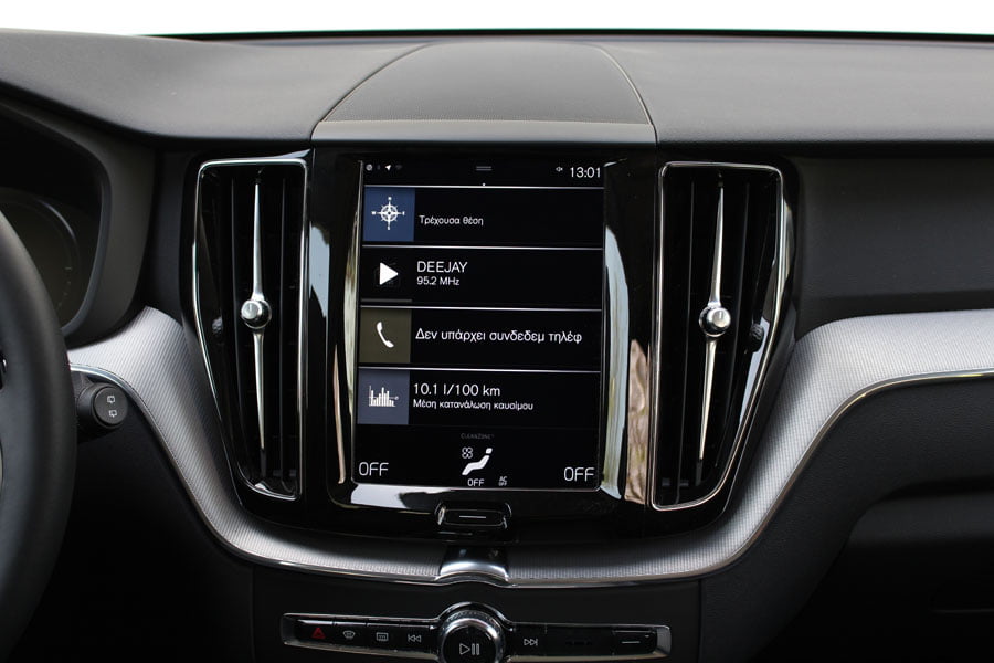 Η πολυτέλεια και η τεχνολογία είναι τα κύρια γνωρίσματα της καμπίνας του Volvo XC60. Τα υλικά είναι προσεγμένα και με καλή συναρμογή, ενώ τόσο στην όψη όσο και στην αφή ικανοποιούν. Οι χρωματικοί συνδυασμοί είναι προσεκτικά επιλεγμένοι και δημιουργούν ένα όμορφο και ξεκούραστο στο μάτι σύνολο. Παράλληλα τα σημαιάκια της Σουηδίας στα καθίσματα και o χειροποίητος κρυστάλλινος λεβιές ταχυτήτων Orrefors, είναι η επιτομή της κομψότητας. Η εργονομία είναι καλά μελετημένη και η κάθετη οθόνη αφής (θυμίζει τάμπλετ) Sensus θέλει λίγη μελέτη για να μάθεις τις πολλές λειτουργίες της. Από εκεί και έπειτα είναι παιχνιδάκι το να χειριστείς τα πάντα από αυτήν. Αν πάντως δεν είσαι της τεχνολογίας μάλλον θα χρειαστείς… σεμινάρια και πολύ διάβασμα μέχρι να τα καταφέρεις.