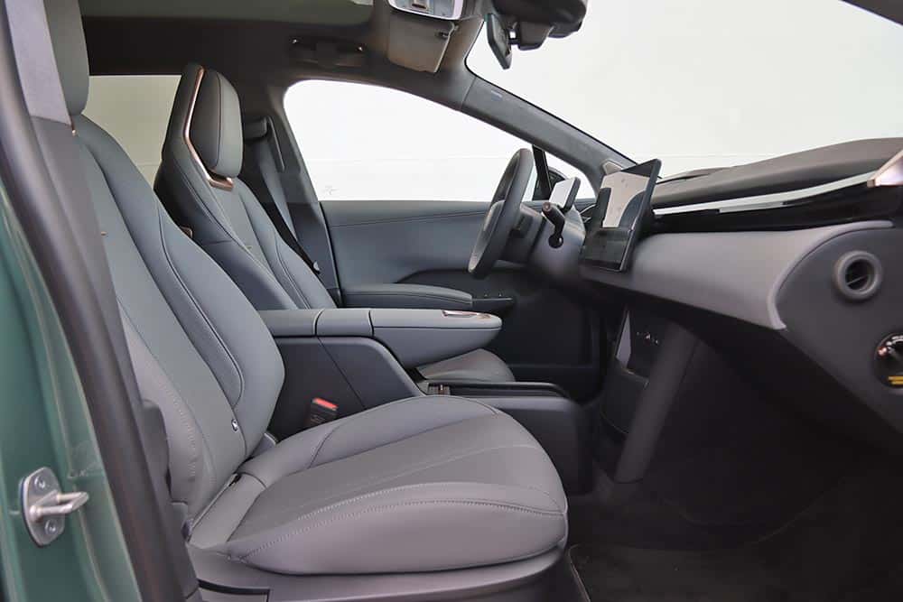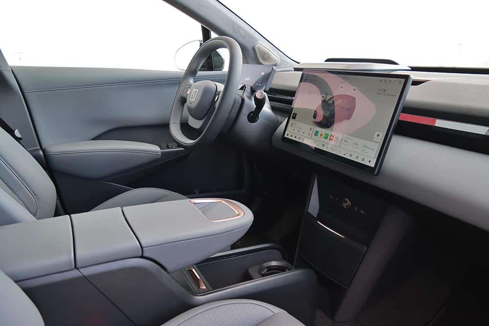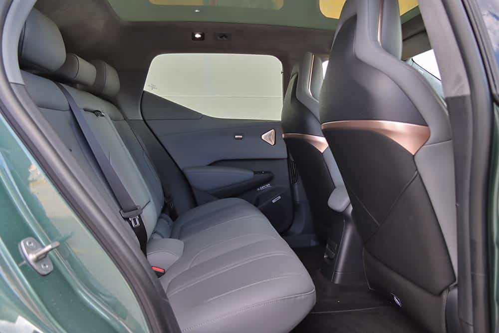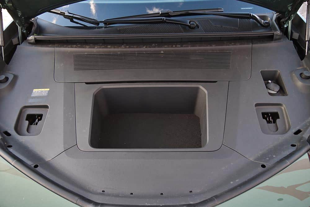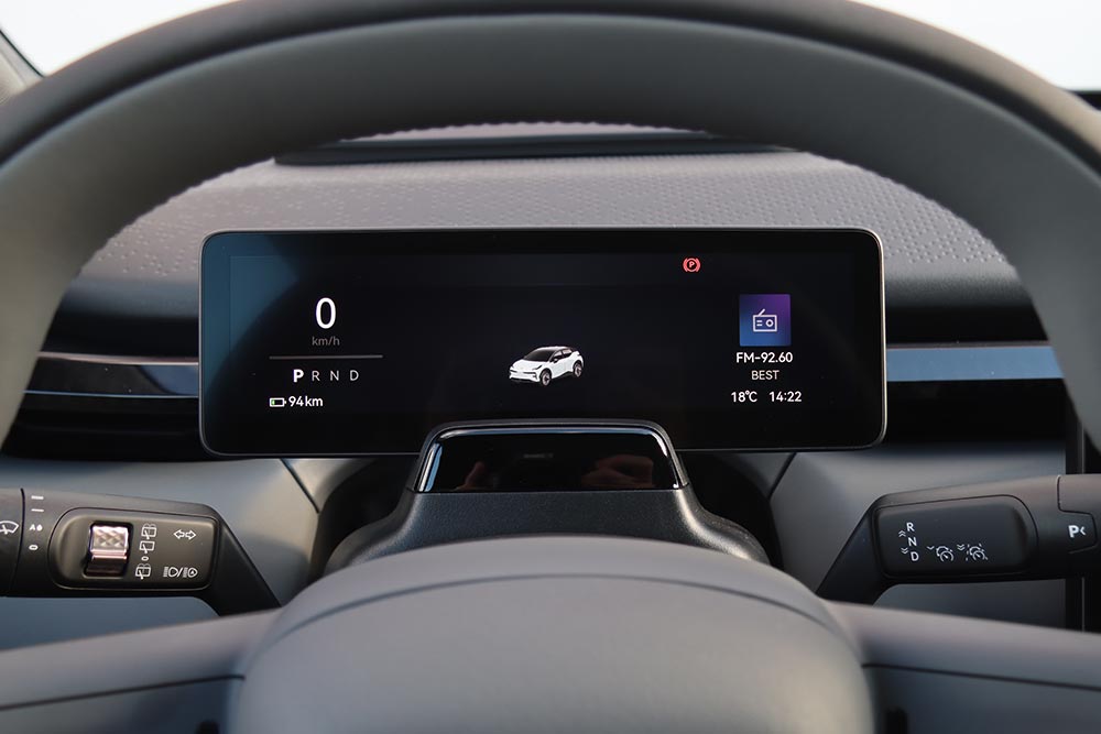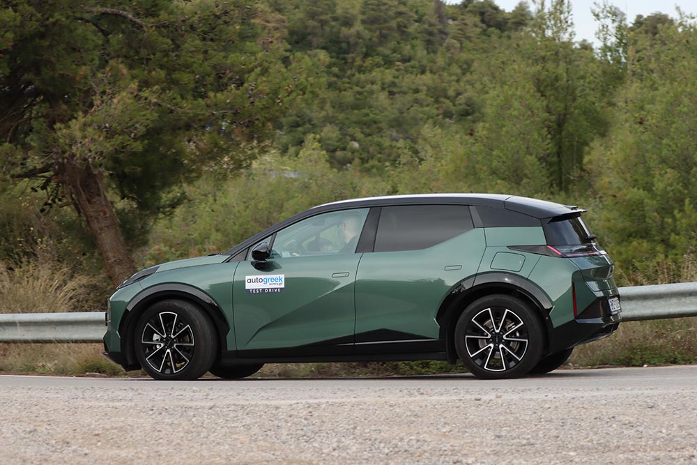 Από εκεί και πέρα, οι χώροι που προσφέρει στο εσωτερικό του επαρκούν σίγουρα για τέσσερις ενήλικες (στο αυτοκίνητο της δοκιμής χάνεται λίγος αέρας για τα κεφάλια, λόγω ηλιοροφής). Ο χώρος φόρτωσης στο πίσω μέρος δεν εντυπωσιάζει με τη χωρητικότητά του (362 λίτρα), αφού είναι μικρότερος συγκριτικά με άλλων μικρομεσαίων SUV. Στο εμπρός μέρος υπάρχει και ένα frunk με χωρητικότητα 21 λίτρα, όπου μπορούν να αποθηκευτούν αντικείμενα, όπως το καλώδιο φόρτισης. Εκεί που βάζεις αρνητικό βαθμό, είναι στην εργονομία. Τα πάντα, κι όταν λέμε «τα πάντα» εννοούμε μέχρι η ρύθμιση των καθρεπτών, ελέγχονται μέσω της οθόνης του infotainment. Διαδικασία που απαιτεί από τον οδηγό να παίρνει συνέχεια το βλέμμα του από το δρόμο, ενώ δεν αποκλείεται να χρειαστεί να σταματήσεις για να ψάξεις με ασφάλεια τα μενού και υπομενού. Αναίτια πολυπλοκότητα, τη στιγμή που έχεις και το σύστημα ελέγχου εγρήγορσης να σε «μαλώνει» από πάνω, επειδή είσαι αφηρημένος! Μείον και το μικρό άνοιγμα των πίσω θυρών, που δυσκολεύει κάπως την επι/αποβίβαση.
