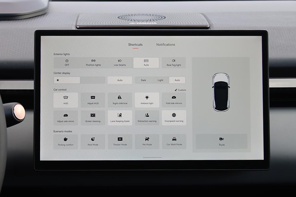Η απουσία της κλασικής μπάρας LED από το εμπρός μέρος είναι καλοδεχούμενη, βοηθώντας το X να αποσπαστεί από τα τετριμμένα σχεδιαστικά δρώμενα. Οι τρισδιάστατοι προβολείς διαθέτουν 56 ανεξάρτητες λυχνίες LED για ακριβή φωτισμό, ενώ τα πίσω φωτιστικά σώματα καλύπτουν όλο το πλάτος και είναι κατασκευασμένα από ελαφρύ ανακυκλωμένο κρύσταλλο, αποτελούμενο από 229 LED.