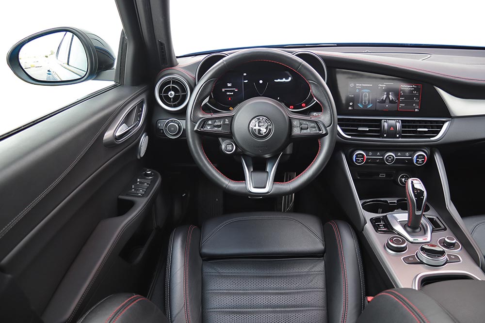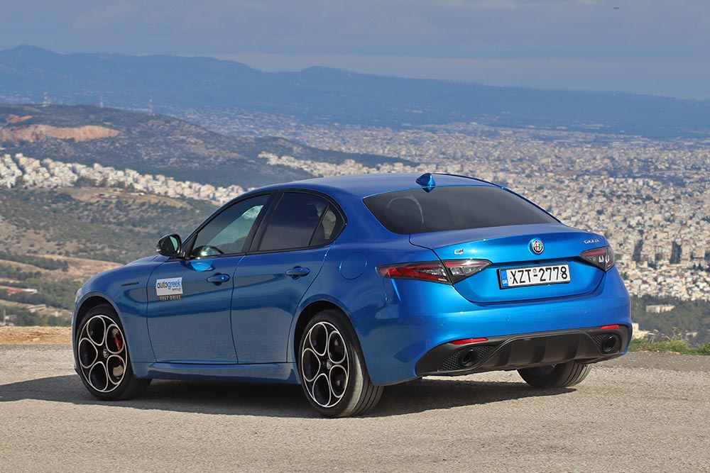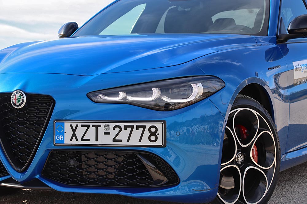 Με 280 ίππους και 400 Nm φέρνει μια εσάνς από ανάμνηση Mitsubishi Evo και Subaru STI, άσχετα που συνδυάζεται αποκλειστικά με το εξαιρετικό 8άρι αυτόματο της ZF. Μια σύμπραξη που, συνδυαζόμενη με το πρόγραμμα Dynamic και το launch control που αυτό συνεπάγεται, χαρίζει καταιγιστική επιτάχυνση. Τα 100 χλμ./ώρα από στάση έρχονται σε μόλις 5,2 δλ., ενώ το σύστημα τετρακίνησης φροντίζει για ανάλογο ρυθμό με ελάχιστες απώλειες στο χρονόμετρο, ακόμα κι όταν η άσφαλτος μοιάζει με γυαλί. Ο ηλεκτρονικά ελεγχόμενος πολύδισκος συμπλέκτης στο κέντρο, ο άξονας μετάδοσης από ανθρακονήματα (όπως σε κάθε Giulia), το ειδικά εξελιγμένο διαφορικό μπροστά και το μπλοκέ πίσω φροντίζουν για το «πάρε-δώσε» ισχύος μεταξύ των αξόνων, σε χρόνους 120-150 millisecond. Μέχρι το 60% της ροπής μπορεί να μεταφερθεί μπροστά, βελτιστοποιώντας τα επίπεδα πρόσφυσης και εκτοξεύοντας την Giulia στον ορίζοντα. Προφανέστατα, αν οδηγείς έτσι θα γίνεις φίλος του βενζινά. Με τέτοιο στυλ δεν μπορείς να περιμένεις κάτι καλύτερο από 16-17 λίτρα/100 χλμ., τα οποία πάντως πέφτουν κάτω από τα 11 λίτρα/100 χλμ. όταν ηρεμήσεις. Σε γενικές γραμμές, πάντως, την «τσιμπάει» την αμόλυβδή της η Giulia, αλλά τουλάχιστον ο οδηγός την ευχαριστιέται.