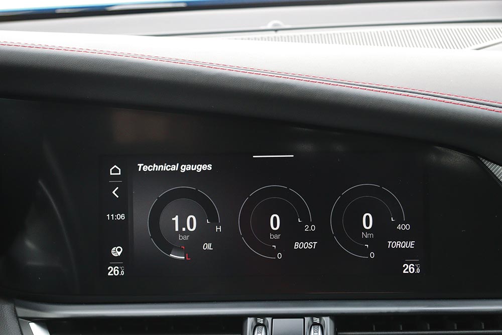 Στο εσωτερικό, αντίθετα, βλέπεις με τη μία την αναβάθμιση. Πρώτα, βέβαια, μένεις να χαζεύεις το τιμόνι που παραπέμπει σε… Ferrari, χάρη στο μπουτόν εκκίνησης που είναι ενσωματωμένο επάνω του και υπογραμμίζει τον σπορ χαρακτήρα της Giulia. Τα δυο χορταστικά και αλουμινένια paddles πίσω από αυτό βγάζουν τον Λεκλέρ από μέσα σου, ενώ ακόμα πιο μπροστά στο οπτικό σου πεδίο δεσπόζει ο νέος ψηφιακός και πλήρως διαμορφώσιμος πίνακας «cannocchialle» των 12,3 ιντσών.