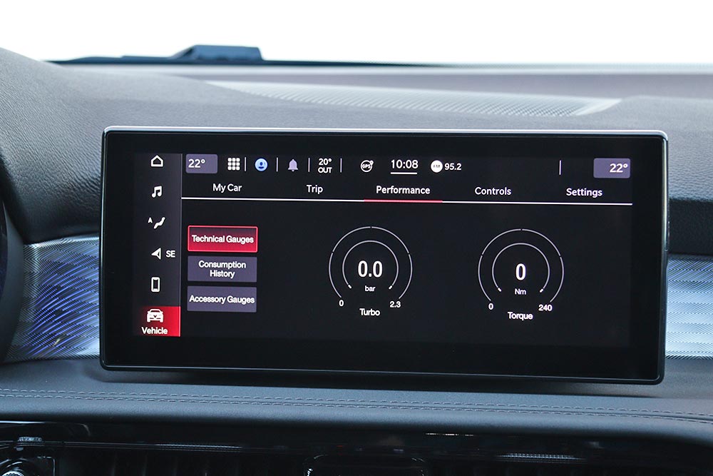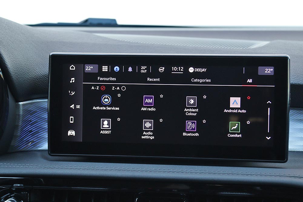Κάτω από τους κεντρικούς αεραγωγούς βρίσκονται τα χρήσιμα χειριστήρια για τον κλιματισμό και πιο κάτω η χωνευτή και σχετικά δύσχρηστη βάση για την ασύρματη φόρτιση κινητού. Ο κυλινδρικός διακόπτης για τη ρύθμιση της έντασης του ήχου κρύβεται από το λεβιέ των ταχυτήτων, ωστόσο για αυτή τη λειτουργία υπάρχουν τα εύκολα προσβάσιμα χειριστήρια στο τιμόνι. Σε πρακτική θέση είναι τοποθετημένο το περιστροφικό χειριστήριο για το «DNA». Ο οδηγός σε κάθε περίπτωση θα βρει εύκολα τη θέση που του ταιριάζει, στο κάθισμα με την κατάλληλη στήριξη και άνεση, ενώ έχει στη διάθεσή του αρκετές θήκες για μικροπράγματα και ποτήρια. Όσον αφορά την ποιότητα, μια γρήγορη ψηλάφηση αρκεί για να διαπιστώσει κανείς την προσοχή που έχει δοθεί στο φινίρισμα, στη χρήση μαλακών υλικών και στην πολύ καλή συναρμογή.