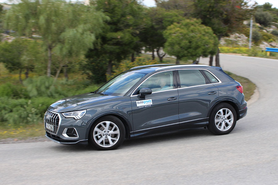 Η μετάβαση στην πλατφόρμα MQB εκτός από τους αυξημένους χώρους, επέφερε και σημαντική βελτίωση στα οδικά χαρακτηριστικά. Τα γόνατα ΜακΦέρσον εμπρός και οι πολλαπλοί σύνδεσμοι πίσω ελέγχουν με χαρακτηριστική ευκολία τις εγκάρσιες και διαμήκεις δυνάμεις που αναπτύσσονται, δίχως να απαιτείται η επιστράτευση σφιχτών αμορτισέρ. Το Q3 περνάει απροβλημάτιστα πάνω ακόμα και από έντονες ανωμαλίες, ενώ στον αυτοκινητόδρομο η μόνη αναταραχή έρχεται από τους μεγάλους καθρέπτες και ένα ελαφρύ βουητό του TFSI υπό πίεση.