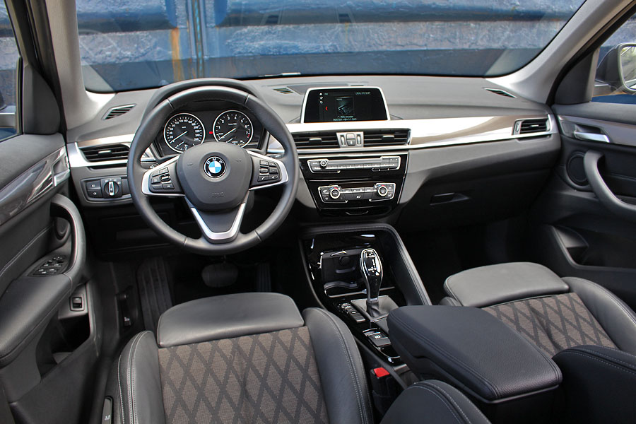 Η BMW X1 δεν θα μπορούσε να μην αποτελεί σημείο αναφοράς στην κατηγορία των μικρομεσαίων SUV και σε ποιότητα κατασκευής. Από την είσοδο στο εσωτερικό ο παρατηρητής αντιλαμβάνεται αμέσως την προσοχή που έχει δοθεί στην καμπίνα σε κάθε σημείο της. Την υψηλή ποιότητα ορίζουν τα αφρώδη υλικά που έχουν χρησιμοποιηθεί σε ολόκληρο το ταμπλό και στο μεγαλύτερο μέρος των θυρών, η στιβαρή συναρμογή και το προσεγμένο φινίρισμα σε κάθε επιφάνεια. Ο οδηγός της X1 θα βρει εύκολα την κατάλληλη θέση, κάθεται σχετικά ψηλά και δεν θα δυσκολευτεί να βρει γρήγορα τις διάφορες λειτουργίες του αυτοκινήτου που απεικονίζονται στην οθόνη Control Display των 6,5 ιντσών (η προαιρετικά 8,8 ιντσών) του λειτουργικού συστήματος iDrive. Στα θετικά γνωρίσματα του εσωτερικού ανήκουν ακόμα οι άνετοι χώροι, το διαιρούμενο συρόμενο πίσω κάθισμα που αυξάνει την πρακτικότητα και το μεγάλο και βαθύ πορτ μπαγκάζ των 505 λίτρων.