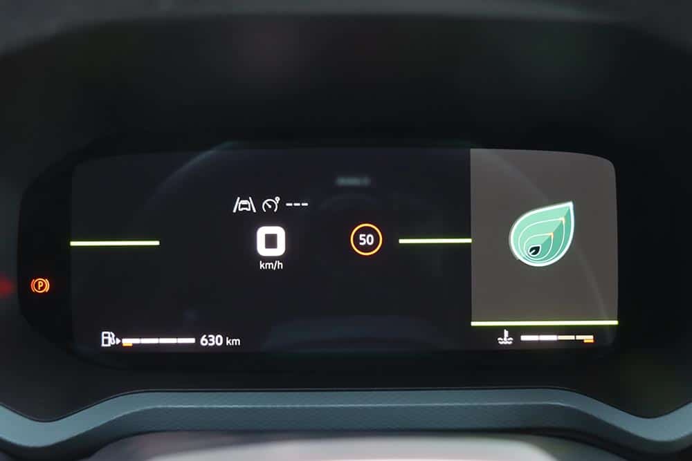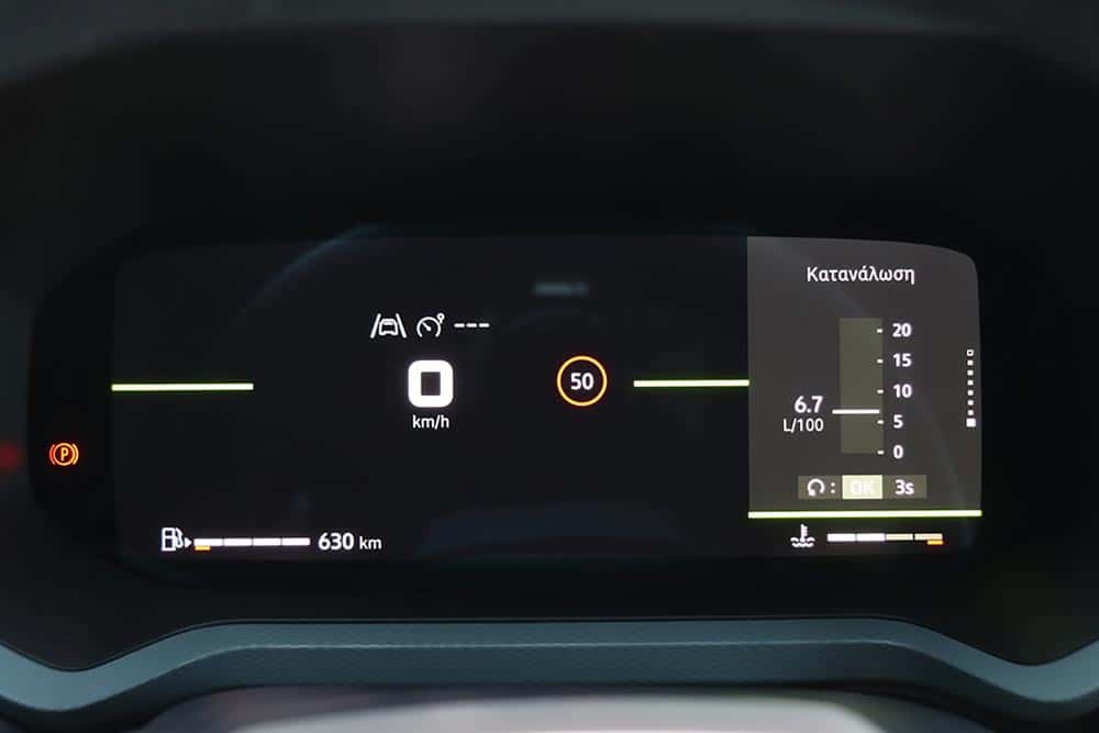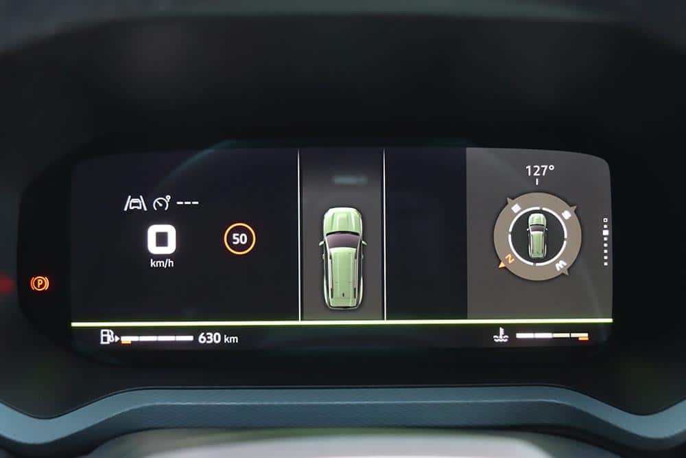 Τα σκληρά πλαστικά ικανοποιούν σε όψη και ποιότητα, αλλά εκεί που πάει κατευθείαν το μάτι είναι στις δυο οθόνες, αλλά και στο στραμμένο προς τον οδηγό κεντρικό τμήμα του ταμπλό. Ο στάνταρ ψηφιακός πίνακας οργάνων 7 ιντσών (10 ιντσών στις πιο πλούσιες εκδόσεις) είναι ορθά ενσωματωμένος στο σύνολο, ενώ η οθόνη αφής 10,1 ιντσών εμφανίζει ενδείξεις για το αλτίμετρο, την κλίση του εδάφους, μέχρι και τις γωνίες που παίρνει το αμάξωμα σε εκτός δρόμου περάσματα. Αυτά περιλαμβάνονται στο… μενού, παρότι η συγκεκριμένη έκδοση δεν είναι τετρακίνητη, όμως τα 220 χλστ. απόστασης από το έδαφος βοηθούν πολύ.