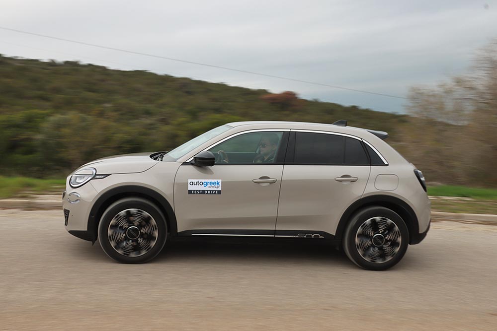 Οι πανέμορφες 18άρες ζάντες Diamond Cut, τα πλαστικά προστατευτικά στους μεγάλους θόλους και πόρτες, αλλά και η κατάλληλα διαμορφωμένη ποδιά στο κάτω τμήμα των προφυλακτήρων τονίζουν τα SUV χαρακτηριστικά του. Σε συνδυασμό και με τη «μπόλικη» απόσταση των 200 χλστ. από το έδαφος, είναι έτοιμο για ξεκάθαρη B-SUV χρήση. Όλα αυτά σε ένα στιλάτο πακέτο που οι Ιταλοί ως γνωστόν είναι «μαέστροι». Το ευτυχές γεγονός είναι ότι οι σχεδιαστές της Fiat κατάφεραν να συνδυάσουν επιτυχημένα ένα ιστορικό όνομα με μια ταιριαστή σχεδίαση. Η πλατφόρμα που πατάει δεν είναι άλλη, από την «e-CMP 2» του ομίλου Stellantis, η γνωστή «υπεύθυνη» του Jeep Avenger αλλά και άλλων B-SUV του ομίλου. Τέλος το γράμμα e σε σιέλ απόχρωση, είναι τοποθετημένο πίσω δεξιά υποδηλώνοντας την ηλεκτρική ταυτότητα του μοντέλου που το διαφοροποιεί από αυτό με τα υβριδικά μηχανικά σύνολα.