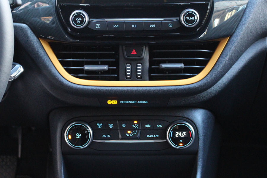 Στο αμάξωμα του Fiesta με τα πλαστικά προστατευτικά και την αυξημένη απόσταση από το έδαφος, τον βρήκε. Το δημοφιλέστατο σουπερμίνι της Ford μπαίνει στη χωμάτινη αρένα των μικρών crossovers με πλήρη γκάμα κινητήρων, η οποία ξεκινά από τον 1.0 Ecoboost των 100 ίππων και φτάνει στην «δική μας» ντίζελ των 120 ίππων. Στο ενδιάμεσο υπάρχουν οι εκδόσεις του 1.000αρη τούρμπο βενζινοκινητήρα με τους 125 και τους 140 ίππους. Το μικρότερο βενζινοκίνητο προσφέρεται αποκλειστικά στην έκδοση Active 2, η οποία πρακτικά διαθέτει τα πάντα: 7 αερόσακους, σύστημα αυτόματου φρεναρίσματος Pre-Collision Assist, αναγνώριση τυφλών σημείων, τα κλασικά ABS-ESP, το σύστημα πολυμέσων Ford SYNC 3 με οθόνη αφής 6,5 ιντσών, ηχοσύστημα Bang & Olufsen με 10 ηχεία και subwoofer, αλλά και ζάντες αλουμινίου 17 ιντσών. Η κορυφαία Active 3 προσθέτει κρυφό εσωτερικό φωτισμό και σύστημα πλοήγησης, αναβαθμίζοντας την οθόνη αφής στις 8 ίντσες.