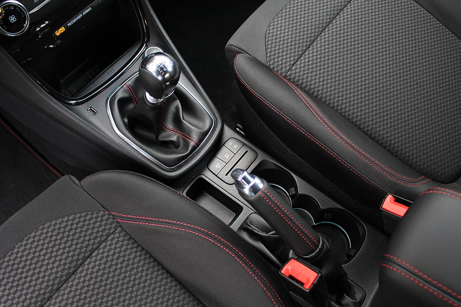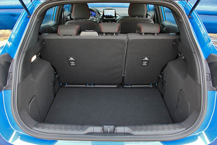Ανοίγοντας την πόρτα, έρχεσαι αντιμέτωπος με μια πολύ γνώριμη εικόνα. Κάτι απολύτως φυσιολογικό, καθώς το εσωτερικό είναι ταυτόσημο με αυτό του Fiesta. Η ποιότητα κι η συναρμογή βρίσκονται σε πολύ καλό επίπεδο, με τα υλικά που χρησιμοποιούνται στο ταμπλό να είναι στο μεγαλύτερο μέρος μαλακά και στιβαρά. Οι πινελιές της έκδοσης ST Line (δερμάτινο τιμόνι με επίπεδο κάτω τμήμα, ραφές στα ημιδερμάτινα μπάκετ, αλουμινένια πεντάλ και επιλογέας, μαύρη επένδυση στον «ουρανό») εντείνουν τις σπορτίφ καταβολές του Puma.