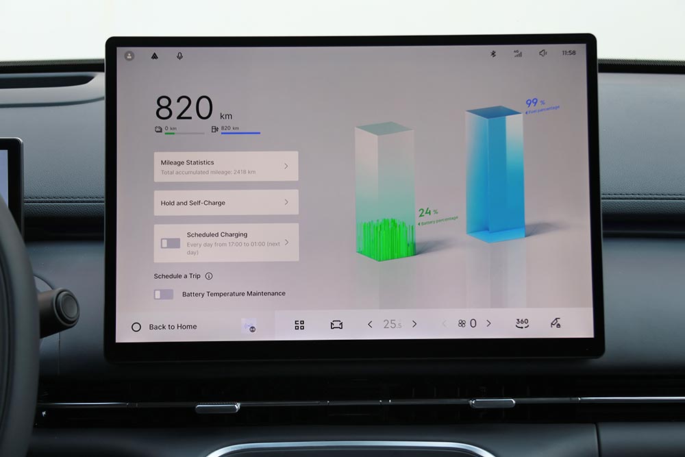 Από τα πρώτα χιλιόμετρα οδήγησης γίνεται σαφές ότι το νέο Geely Starray EM-i έχει ένα πολύ συγκεκριμένο στόχο: να κινείται όσο το δυνατόν περισσότερο σαν ηλεκτρικό αυτοκίνητο. Έτσι, η απόκριση του συστήματος κίνησης είναι άμεση, γραμμική, χωρίς καθυστερήσεις και η αίσθηση στο γκάζι θυμίζει περισσότερο EV παρά κλασικό plug-in υβριδικό σύνολο. Και αυτό από μόνο του αλλάζει την εμπειρία χρήσης. Στην πόλη, για παράδειγμα, αυτή η προσέγγιση αποδίδει τα μέγιστα, με την κίνηση του πληθωρικού SUV των 4,74 μ. μήκους να γίνεται σχεδόν αθόρυβα και με κατανάλωση από μηδενική έως περίπου 3 λτ./100 χλμ. Δεν υπάρχει «νευρικότητα», ούτε απότομα τινάγματα από το σύστημα κίνησης. Ακόμα και όταν εμπλέκεται ο θερμικός κινητήρας, η μετάβαση είναι τόσο ήπια που δύσκολα γίνεται αντιληπτή.