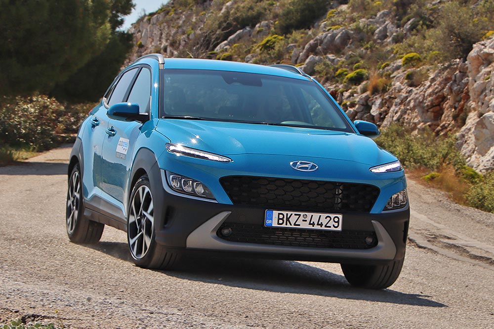 Μόλις αρχίσουν οι στροφές, η σφιχτή ανάρτηση αναλαμβάνει δράση. Οι κλίσεις παραμένουν σε χαμηλό επίπεδο και το 235άρι πέλμα των 18άρηδων τροχών σε επαφή με το οδόστρωμα, παρέχοντας στον οδηγό του Kona εμπιστοσύνη και πληροφόρηση. Το τιμόνι βαραίνει λίγο παραπάνω από όσο θες στο Sport, αλλά δεν αλλοιώνεται η αίσθηση. Αφ’ ης στιγμής που δεν είναι τετρακίνητο, θέλει μια κάποια εγκράτεια το γκάζι στις κλειστές καμπές. Σχεδόν 200 άλογα στον εμπρός άξονα είναι αυτά, όμως επ’ ουδενί δεν σε προβληματίζουν.
