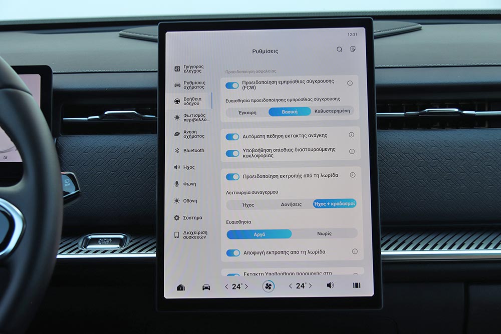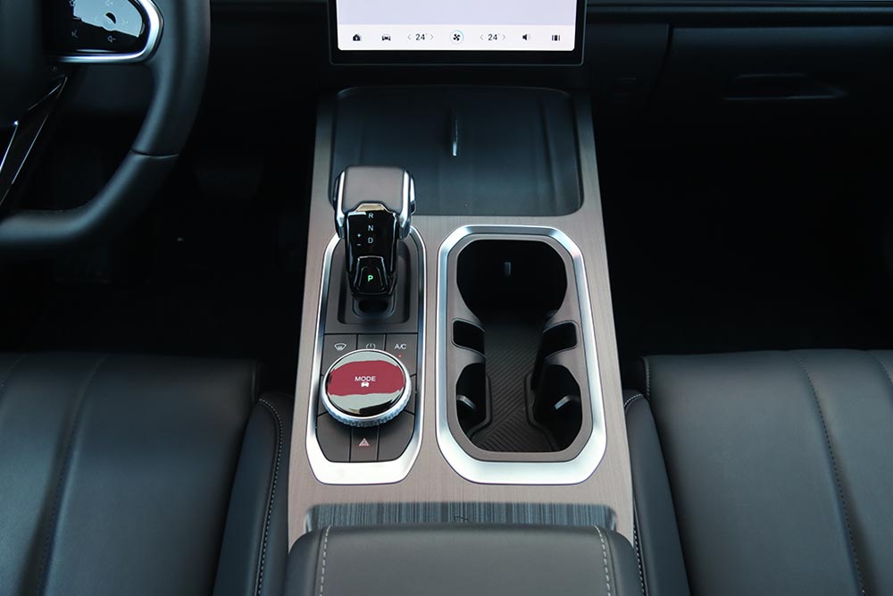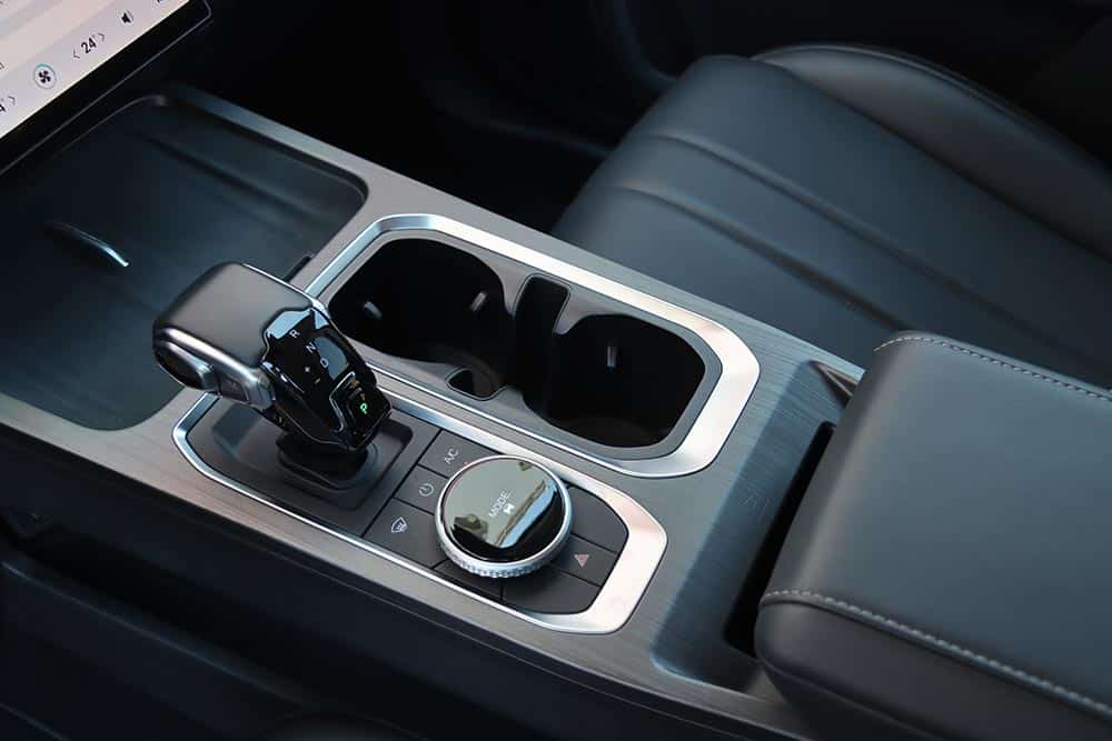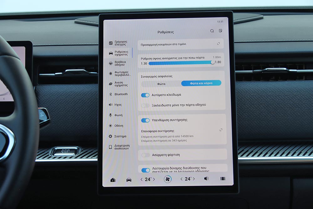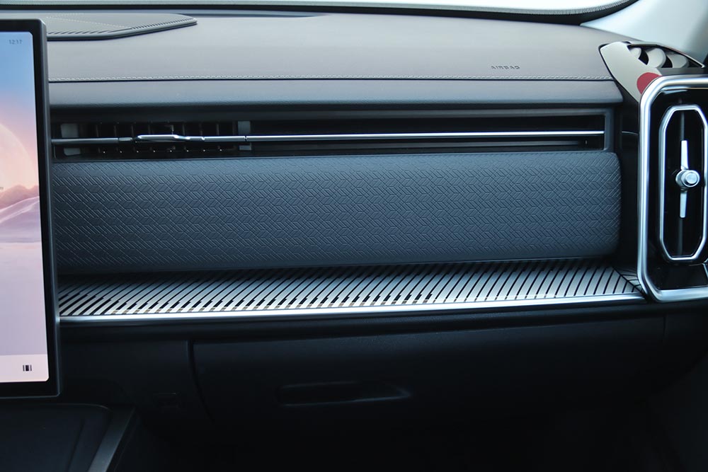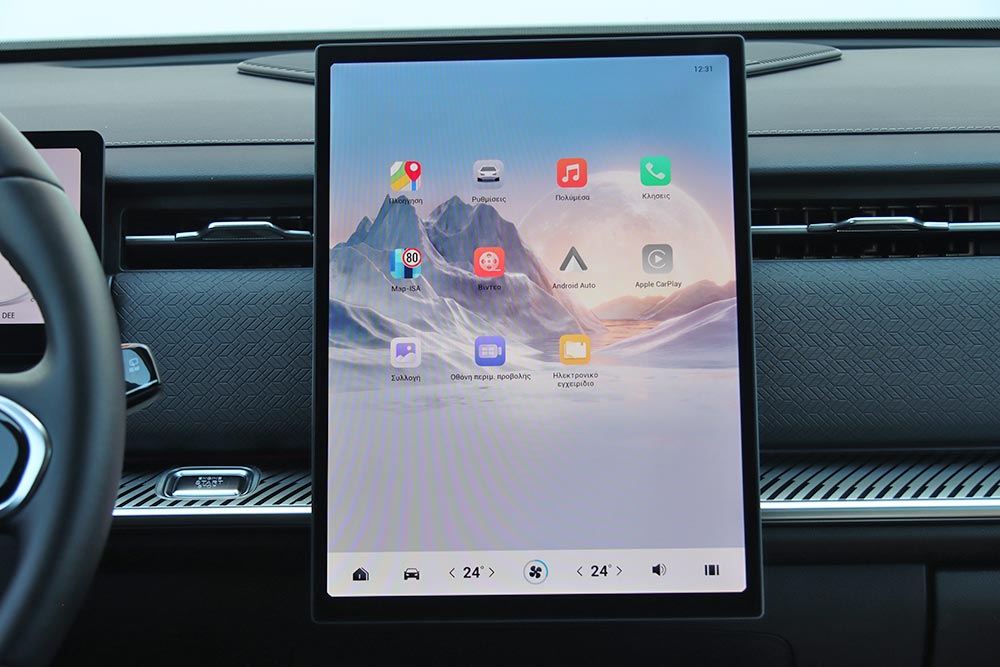 Στο εσωτερικό του Jaecoo 7 ακολουθείται ένα σχεδιαστικό μοτίβο στο ταμπλό που συναντάται πολύ σε αρκετά καινούργια αυτοκίνητα. Μια οθόνη για τον πίνακα οργάνων (10,25 ιντσών), άλλη μία κάθετη στο κέντρο του infotainment (13,2 ιντσών ή 14,8 ιντσών στο πιο πλούσιο Exclusive), ευθείες γραμμές και ελάχιστα φυσικά χειριστήρια. Γεγονός που αυτομάτως σημαίνει ότι όλες οι λειτουργίες ελέγχονται από την κεντρική οθόνη με το μενού που απαιτεί λίγα λεπτά εκμάθησης έτσι ώστε ο οδηγός να βρίσκει εύκολα τις βασικές λειτουργίες. Ο επιλογέας του αυτόματου κιβωτίου που παραπέμπει σε μοχλό αεροσκάφους κυριαρχεί στη βάση της κεντρικής κονσόλας, όπου παράλληλα βρίσκονται το περιστροφικό χειριστήριο του Drive Mode, κάποιοι διακόπτες, ποτηροθήκες και δύο θέσεις ασύρματης φόρτισης smartphone. Στις πόρτες τα ασημί διακοσμητικά με τις βίδες θέλουν να δώσουν μια «off road» πινελιά, αλλά τελικά είναι μάλλον παράταιρα με το πολυτελές ύφος που θέλει να προβάλλει το αυτοκίνητο. Από πλευράς ποιότητας τα μαλακά υλικά που έχουν χρησιμοποιηθεί σε πολλές επιφάνειες είναι καλά, όπως επίσης το φινίρισμα και η συναρμογή.