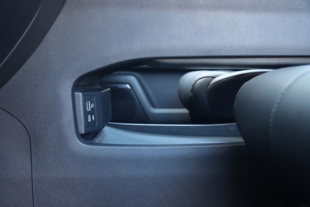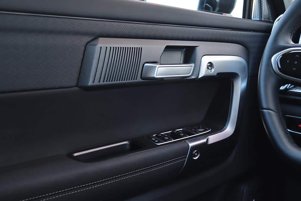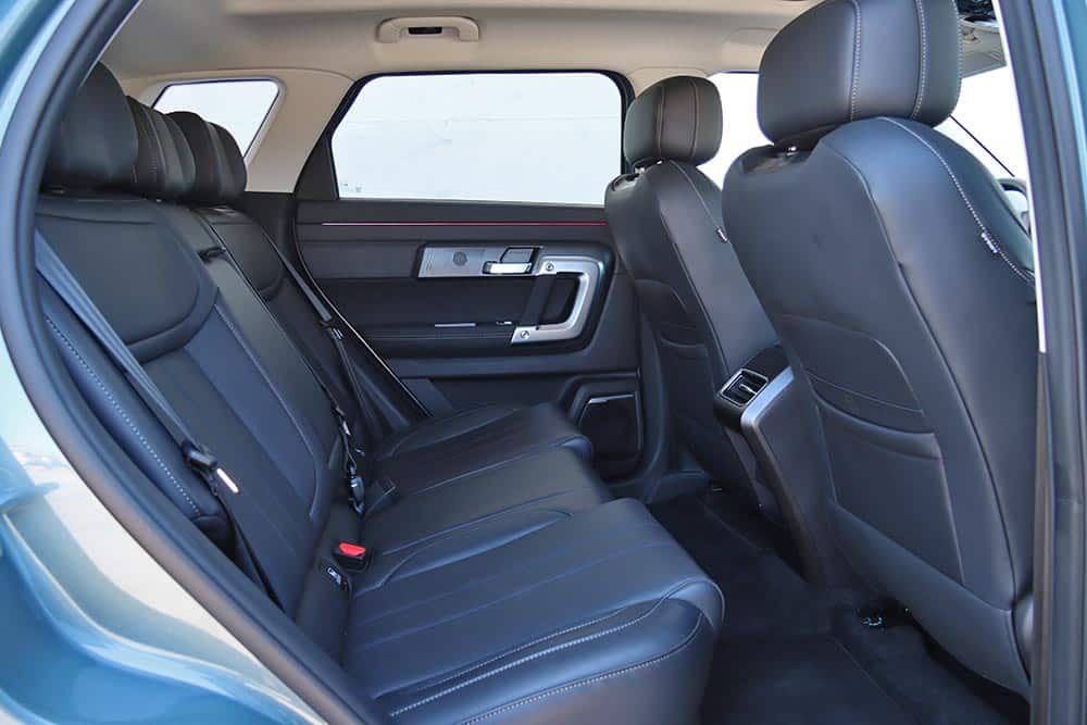 Τα καθίσματα με τη στάνταρ μαύρη δερματίνη δεν είναι ό,τι καλύτερο ειδικά όταν καίει ο ήλιος, αλλά τουλάχιστον στη δεύτερη έκδοση Exclusive την κατάσταση σώζει ο αερισμός. Στο βασικό εξοπλισμό ανήκει και η πανοραμική οροφή συνολικού εμβαδού 1,1 τ.μ., μαζί με ηλεκτρικά ρυθμιζόμενα και θερμαινόμενα εμπρός καθίσματα. Ο οδηγός από την πλευρά του θα βολευτεί γρήγορα, όμως αυτό που θα τον ενοχλήσει είναι ο εσωτερικός καθρέπτης με το πολυεστιακό κρύσταλλο που δείχνει κάπως θολό. Στα πολύ θετικά χαρακτηριστικά του Jaecoo 7 ανήκει η ευρυχωρία που παρέχει. Στο πίσω κάθισμα ο αέρας για τα πόδια είναι πολύς, όμως το κάθισμα είναι σχετικά χαμηλά τοποθετημένο και αυτό ίσως ενοχλήσει κάποιους σε πολύωρες διαδρομές. Το πορτ μπαγκάζ των 584 λτ. είναι μεγάλο και φτάνει έως τα 1.349 λτ. με την αναδίπλωση της πλάτης του πίσω καθίσματος.