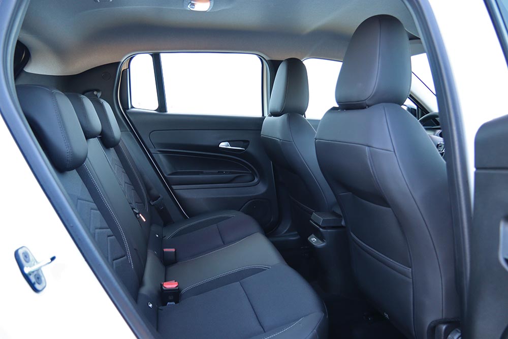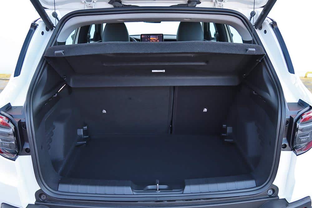 Με μήκος 4.084 χλστ., πλάτος 1.776 χλστ., ύψος 1.534 χλστ. και μεταξόνιο 2.557 χλστ., 4 επιβάτες θα βολευτούν στα άνετα καθίσματα με τους χώρους για το κεφάλι και τα πόδια των πίσω να κρίνονται αρκετά καλοί. Βέβαια οι ψηλότεροι (1,80 μ. και πάνω) μπορεί να νιώσουν τα πόδια τους να ακουμπούν στις πλάτες των εμπρός καθισμάτων, αλλά από ευρυχωρία στους ώμους δεν θα έχουν παράπονα. Ο χώρος των αποσκευών είναι στα 380 λίτρα (έως 1.275 λίτρα), έχοντας κερδίσει 25 λίτρα περισσότερα σε σχέση με αυτόν του ηλεκτρικού λόγω της απουσίας των μπαταριών. Mε το έξτρα ηλεκτρικό άνοιγμα/κλείσιμο της πόρτας να λύνει κυριολεκτικά τα χέρια. Αρκεί ένα νεύμα του ποδιού κάτω από τον πίσω προφυλακτήρα και απέκτησες πρόσβαση. Παράλληλα, στον στάνταρ εξοπλισμό ανήκουν όλα τα γνωστά, σύγχρονα και απαραίτητα πλέον στοιχεία ασφάλειας, υποβοήθησης του οδηγού και ανέσεων.