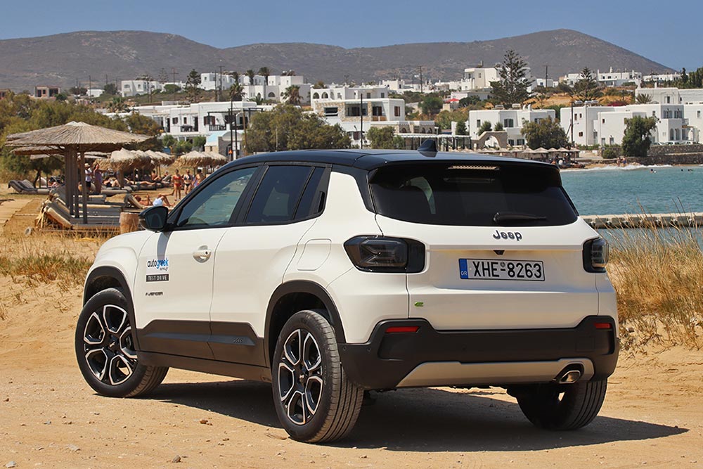 Το μικρό Jeep, χάρη στη μελετημένη προσέγγιση των μηχανικών που του έχουν δώσει 20 εκατοστά απόσταση από το έδαφος, μαζί με ικανοποιητικό προφίλ γύρω από τους τροχούς (55άρι με τις προαιρετικές 18άρες ζάντες, 60άρι με τις 17άρες) τα καταφέρνει περίφημα με τη δέουσα προσοχή ακόμα και σε αμμώδες περιβάλλον αν και προσθιοκίνητο. Φυσικά δεν θα μπορούσε να κινηθεί εξίσου άνετα όπου ένα αμιγώς 4κίνητο, αλλά αυτό θα συμβεί με το επερχόμενο 4xe που αναμένουμε με ανυπομονησία.