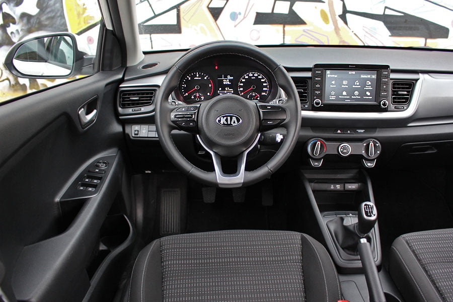 Αν γνωρίζεις το εσωτερικό του Kia Rio, τότε δεν θα εκπλαγείς βλέποντας αυτό του Stonic, καθώς έχουμε να κάνουμε με την ίδια αρχιτεκτονική και αισθητική. Και πάλι η εικόνα που συναντάμε είναι αποτέλεσμα των σχεδιαστικών ομάδων σε Ευρώπη και Κορέα, ενώ μπορείς να το εξατομικεύσεις μέσα από πλήθος επιλογών. Οι «καθαρές» γραμμές αφήνουν χώρο στην εργονομία, όπως διαπιστώσαμε και στην πράξη, τα σκληρά πλαστικά είναι αρκετά καλά και η συναρμογή το ίδιο. Το ταμπλό έχει μια μικρή κλίση προς τον οδηγό, σε μία προσπάθεια να τονιστεί ο οδηγοκεντρικός σχεδιασμός του. Τα βλέμματα κεντρίζει η οθόνη 7,0 ιντσών για το σύστημα πολυμέσων, η οποία είναι συμβατή με Apple CarPlay και Android Auto και προαιρετικό διαθέτει σύστημα πλοήγησης. Οι διακόπτες αεροπορικού τύπου για τον κλιματισμό, η διχρωμία σε ταμπλό και πάνελ θυρών, το τιμόνι με το επίπεδο κάτω μέρος αλλά και ο ευανάγνωστος πίνακας οργάνων ολοκληρώνουν το αισθητικό παζλ στην καμπίνα. Η τελευταία μάλιστα είναι αρκετά πρακτική καθώς διαθέτει αρκετούς χώρους για μικροαντικείμενα, μεγάλες τσέπες στις πόρτες εμπρός και μπορεί να φιλοξενήσει με άνεση τέσσερις ενήλικες, αφήνοντας 352 λίτρα στον χώρο αποσκευών με το διπλό δάπεδο, που φτάνει στα 1.155 λίτρα με την αναδίπλωση των πίσω καθισμάτων.