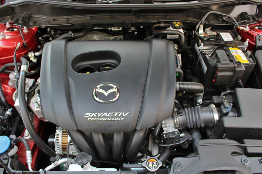 Κόντρα στο ρεύμα της εποχής, οι Ιάπωνες επιμένουν ατμοσφαιρικά. Τα 90 άλογα από 1.496 κυβικά φαντάζουν λίγα, σε μια περίοδο που την ίδια ισχύ βρίσκουμε σε 900άρια τούρμπο. Όμως το δόγμα της Mazda είναι απαράβατο: απλότητα και απόλαυση μέσω αυτής. Ο SKYACTIV-G διαθέτει το σύστημα G-Vectoring Control, το οποίο επιδρά στο γκάζι και τα φρένα προς όφελος της αμεσότητας απόκρισης και την βελτίωση της πρόσφυσης. Τα 100 χλμ./ώρα από στάση έρχονται σε 9,7 δλ. και η τελική φτάνει τα 183 χλμ./ώρα, αποδεικνύοντας πως δεν χρειάζεσαι τουρμπίνες και λοιπά παρελκόμενα για να κινηθείς σβέλτα.