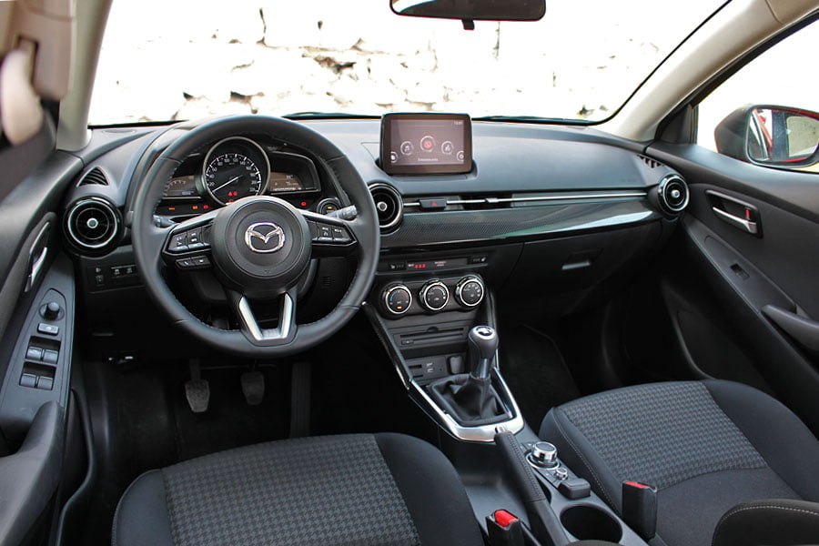 Γενικότερα τα Mazda ευαγγελίζονται την απλότητα και την έλλειψη περιττών στοιχείων. Πιο χαρακτηριστικό παράδειγμα από το εσωτερικό του Mazda2, δύσκολα θα βρει κανείς.