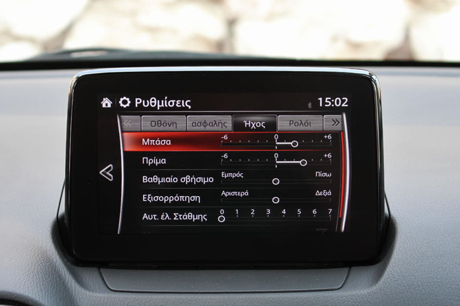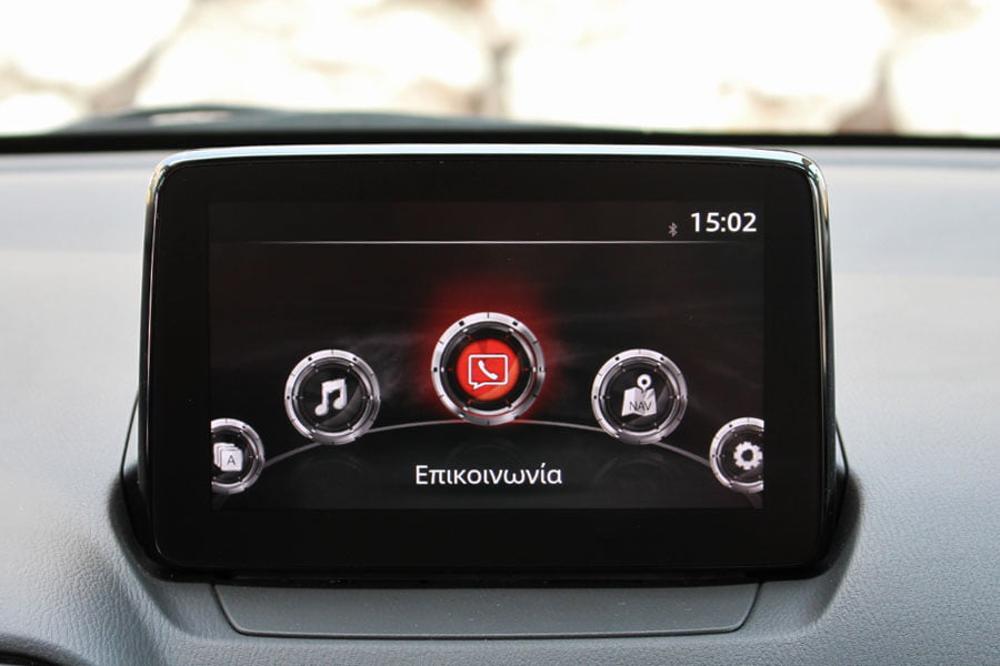 Τα πάντα είναι τοποθετημένα εντός βεληνεκούς οδηγού και με συναρμογή που σου δίνει την αίσθηση ότι τα -σκληρά- πλαστικά θα αντέξουν στο πέρασμα του χρόνου. Εντυπωσιασμοί και φανφάρες με πληθωρικές οθόνες και συρφετό gadgets δεν συναντώνται. Λίγοι διακόπτες, μια μικρή οθόνη στην κορυφή του ταμπλό, όμορφος και ευανάγνωστος πίνακας οργάνων, μελετημένη σχεδίαση. Αυτές είναι οι αρχές που διέπουν την καμπίνα των επιβατών – και είναι πέρα για πέρα ευπρόσδεκτες, σε μια εποχή που η πολυπλοκότητα κάνει «πάρτι» στα συστήματα πολυμέσων. Το MZD Connect είναι από τα πιο εύκολα που συναντάς σε σύγχρονο αυτοκίνητο, αλλά η οθόνη έχει την τάση να μην «ακούει» στο άγγιγμα.