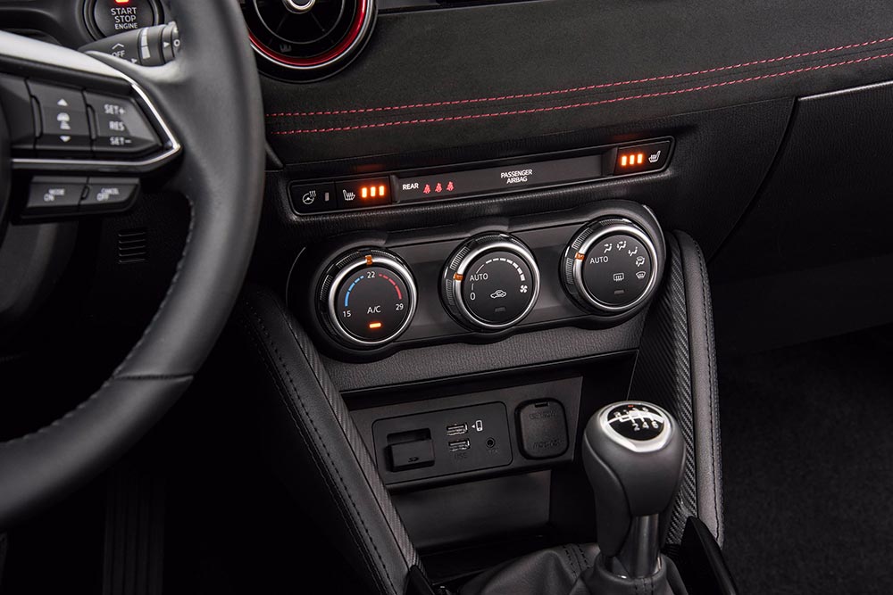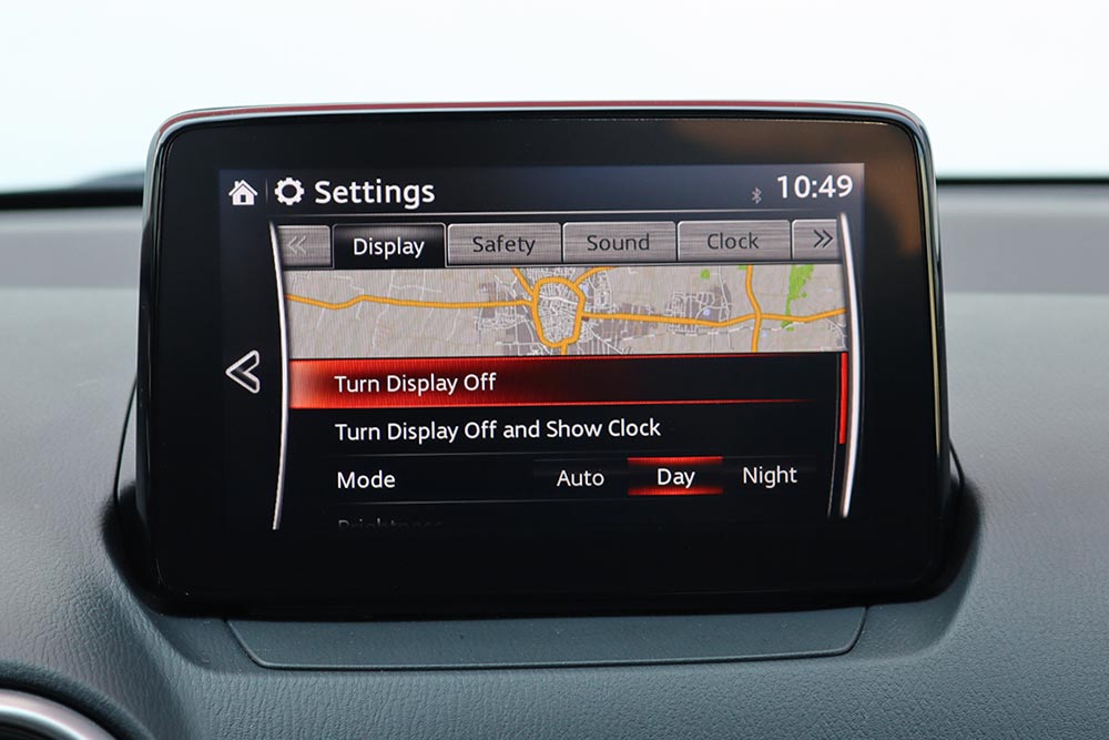 Το εσωτερικό του νέου Mazda2 κινείται πιστά στην ιαπωνική φιλοσοφία, με όλα τα απαραίτητα χειριστήρια να βρίσκονται στην ιδανική θέση, άμεσα προσβάσιμα από τον οδηγό. Ενώ σε πολλά αυτοκίνητα του σήμερα, ψάχνει να βρει ο οδηγός τις απλές «καθημερινές» ρυθμίσεις μέσα από οθόνες και διακόπτες αφής, εδώ, τα φυσικά χειριστήρια κάνουν τη ζωή του πιο εύκολη και απλή. Η ποιότητα κατασκευής στην καμπίνα είναι αρκετά καλή, με σκληρά μεν, αλλά στιβαρά υλικά και κυρίως με σωστή συναρμογή, αφού ακόμα και σε κακοτράχαλο οδόστρωμα δεν ακούγονται τριγμοί. Θετικά σχόλια κερδίζει το σπορ τιμόνι, καθώς επίσης κι ο ευανάγνωστος πίνακας οργάνων. Ικανοποιημένοι θα μείνετε κι από την οθόνη του infotainment, το οποίο είναι συμβατό με Apple CarPlay και Android Auto. Οι εντολές στο σύστημα δίνονται από το χειριστήριο πίσω από το λεβιέ ταχυτήτων όταν είστε εν κινήσει (για λόγους ασφαλείας), ενώ όταν είστε σταματημένοι, η οθόνη των 8 ιντσών ανταποκρίνεται και στην αφή.