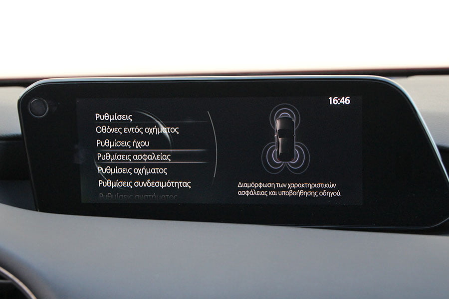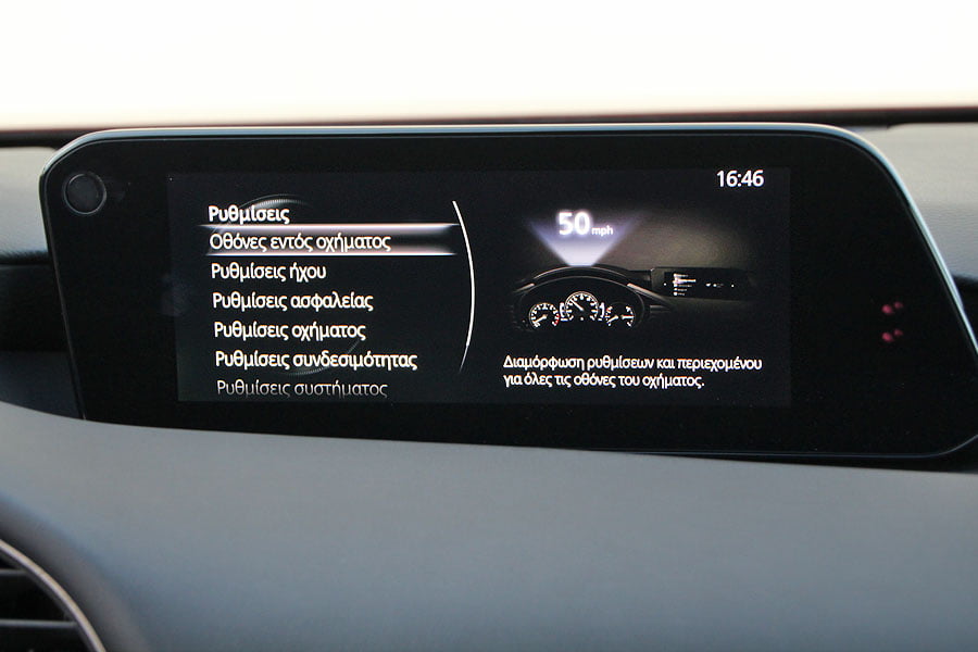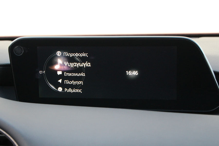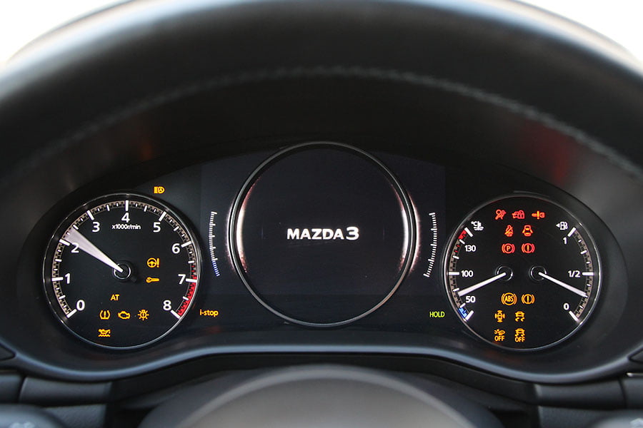 Το πρώτο πράγμα που παρατηρείς στην καμπίνα του Mazda3, είναι η μικρή παρουσία διακοπτών και η οδηγοκεντρική προσέγγιση.