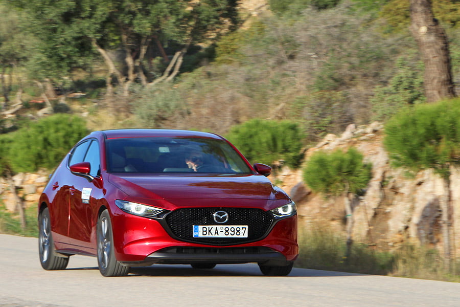 Όταν ο δρόμος στενέψει, πάντως, πρακτικά ακούς το πλαίσιο να φωνάζει για έκδοση MPS. Ή έστω, παραπάνω δύναμη. Η εξαιρετική θέση οδήγησης, το πολύ καλό σε βάρος και αίσθηση τιμόνι, μαζί με το αντίστοιχο πεντάλ των φρένων (αν και σε κάποιες περιπτώσεις δεν λείπει ένα σπογγώδες feedback, ειδικά λίγο πριν ακινητοποιηθεί το αυτοκίνητο) σε βάζουν στο κλίμα. Κι η συμπεριφορά του Mazda3 δεν κάνει τίποτα για να σε βγάλει από αυτό.