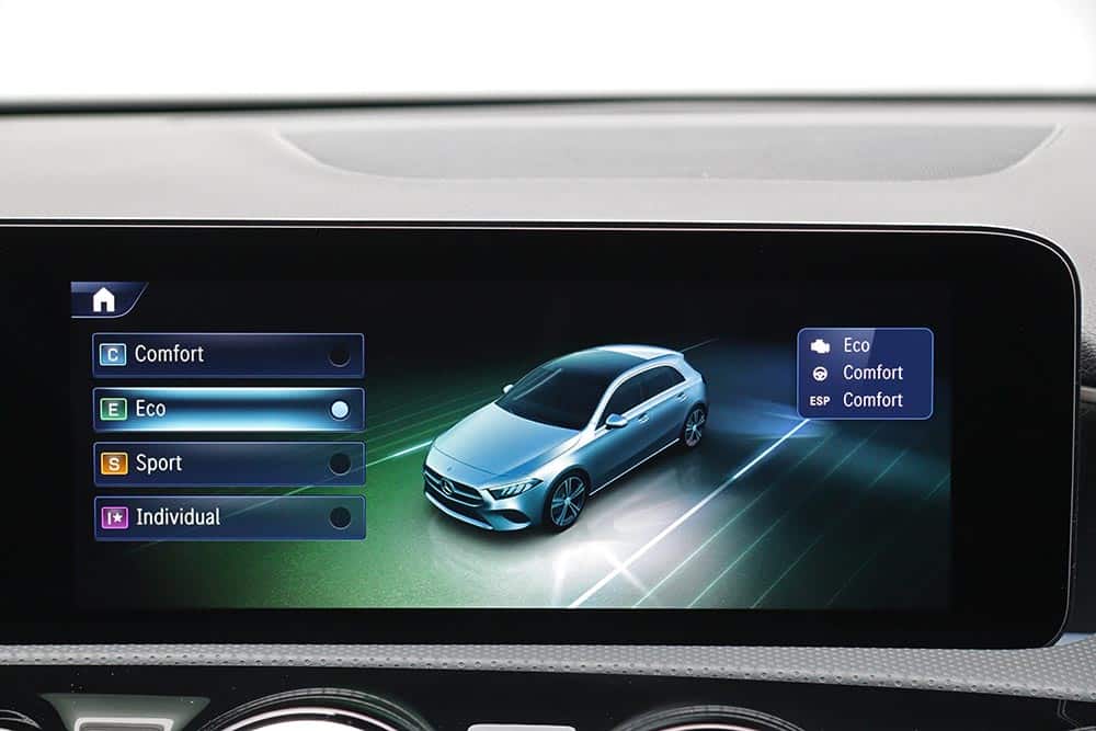 Όλες οι παραπάνω αλλαγές θα μπορούσαν να χαρακτηριστούν ως ορεκτικό. Το κυρίως πιάτο της ανανεωμένης A-Class βρίσκεται κάτω από το καπό, όπου πια απαντώνται μόνο υβριδικά (mild και plug-in) κινητήρια σύνολα. Ο τετρακύλινδρος 1.33 λτ. υπερτροφοδοτούμενος παράγει τα ίδια 163 άλογα και 270 Nm, όπως πριν, αλλά τώρα δέχεται τη συνδρομή ενός μικρού ηλεκτρικού μοτέρ με 14 ίππους και -κυρίως- 150 Nm. Η έξτρα ροπή κάνει όλη τη δουλειά στις χαμηλές στροφές, καλύπτοντας μια μικρή υστέρηση που εμφανίζει ο θερμικός κινητήρας και δίνοντας αυτό το boost (EQ Boost, για την ακρίβεια) που χρειάζεσαι, ώστε να μην πατάς παραπάνω το γκάζι.