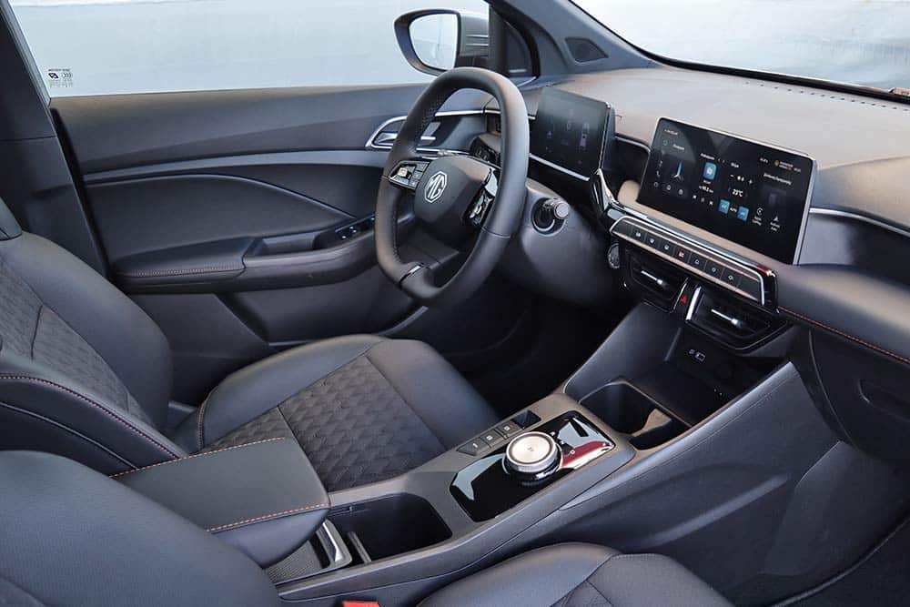 Ο μικρότερος εκπρόσωπος της MG ξεχωρίζει αρχικά για το σφηνοειδή του σχεδιασμό, με το μυτερό ρύγχος α λα MG4, την πολύ πλατιά μάσκα, τα τριγωνικά φώτα και τα έντονα νεύρα που διατρέχουν το καπό και τα πλευρικά του τμήματα. Στο πλάι διακρίνεις τις ανάγλυφες επιφάνειες, αλλά στο πίσω μέρος οι σχεδιαστές προτίμησαν μια πιο ουδέτερη μορφή. Όχι ότι είναι άσχημο, απλά παρα-είναι ήπιων τόνων και τυποποιημένο, ειδικά όταν κάνεις τη σύγκριση με το μπροστινό. Γενικά, το Hybrid+ δεν δείχνει πουθενά ότι έχει σχεδόν 200 άλογα από κάτω, με μεγάλο ρόλο σε αυτή τη ντροπαλότητα να παίζουν οι μικροί τροχοί.