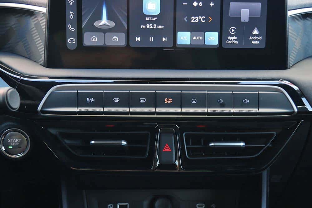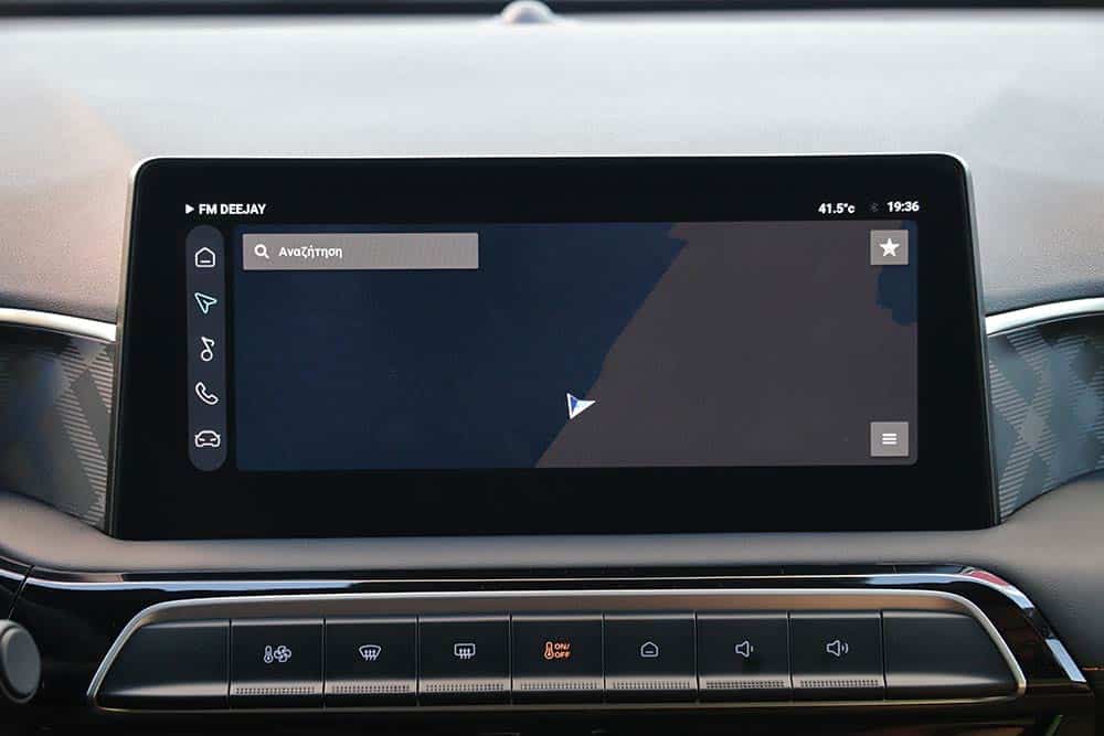 Η καμπίνα επιβατών σε καλωσορίζει με δυο οθόνες και ένα flat bottomed τιμόνι, αλλά δυστυχώς, χωρίς ρύθμιση σε απόσταση. Παρόλα αυτά δεν δυσκολεύεσαι ιδιαίτερα να βρεις καλή θέση οδήγησης, έχοντας μπροστά σου ένα μίνιμαλ ψηφιακό πίνακα οργάνων 7 ιντσών. Ευχάριστη αλλαγή σε σχέση με τα πελώρια καντράν, που τοποθετούνται κατά κύματα στα νέα τετράτροχα. Η οθόνη των 10,25 ιντσών για το infotainment είναι σε λογικές διαστάσεις, διακρινόμενη για την ευχρηστία, την ευκρίνεια και την καλή ποιότητα των γραφικών της.