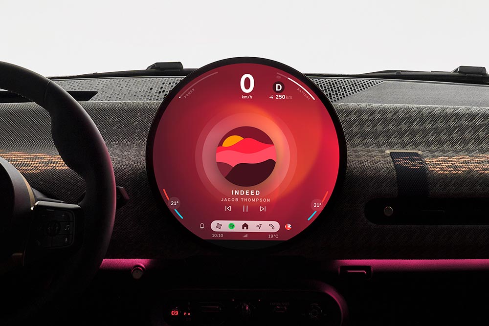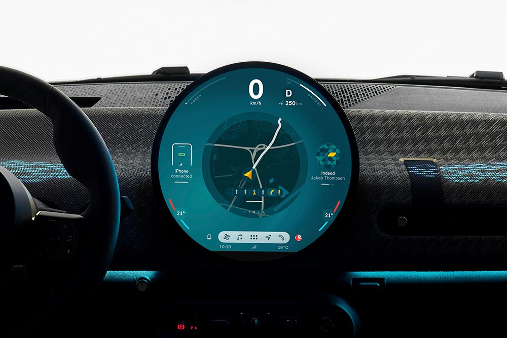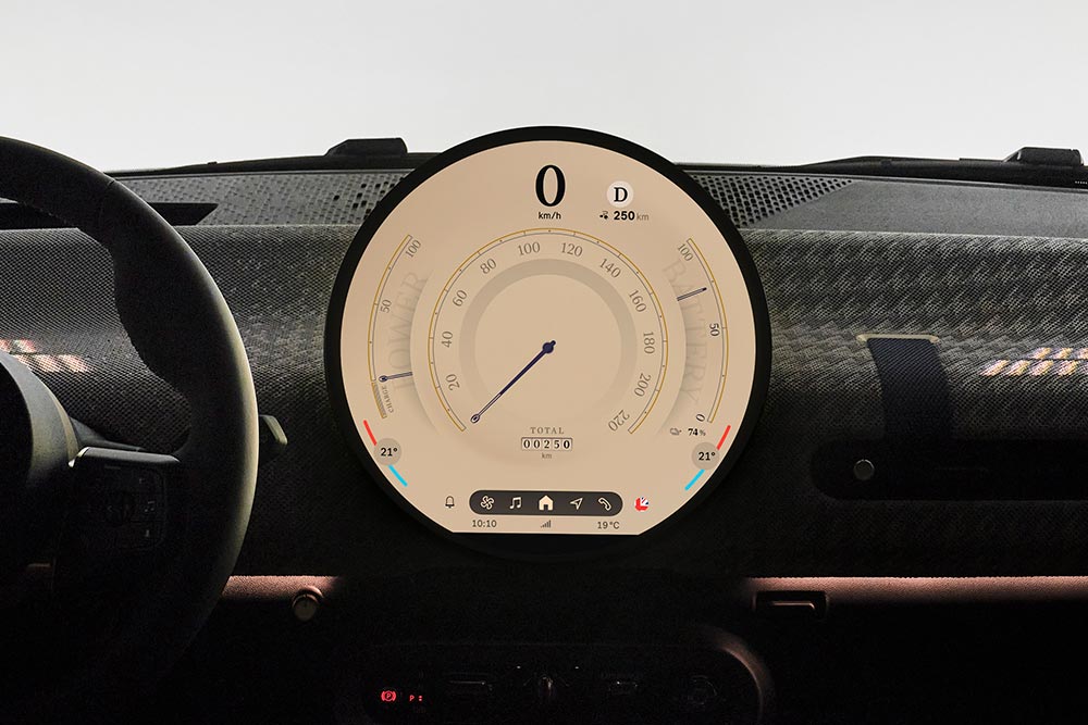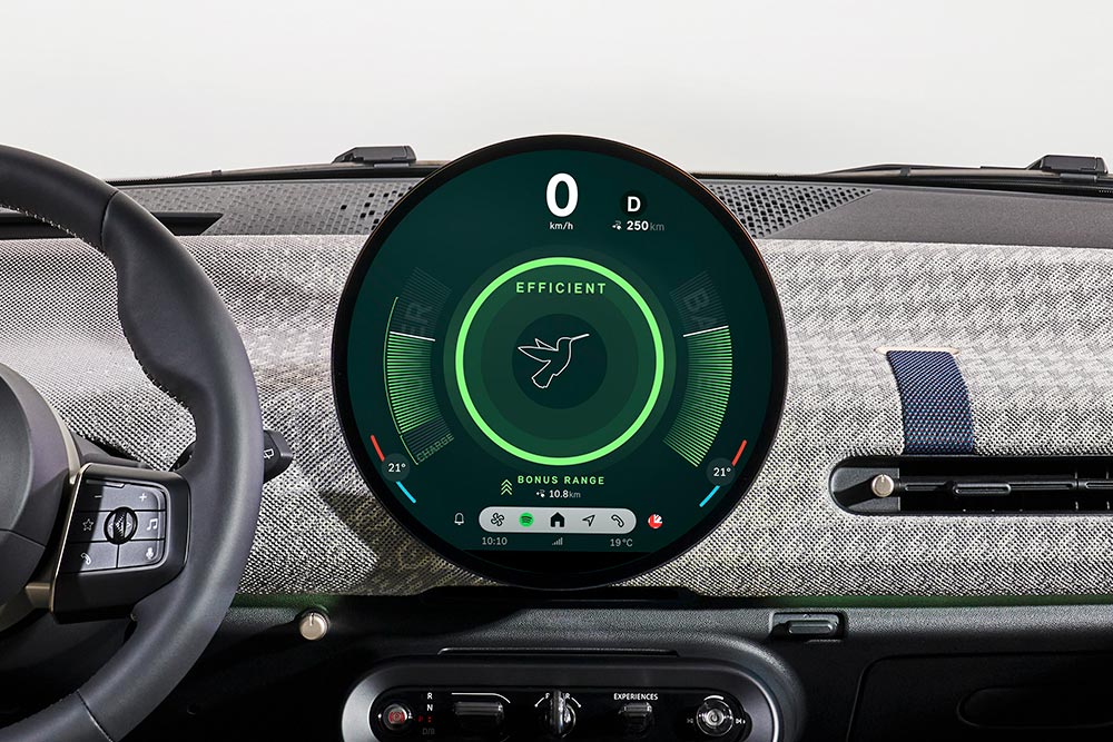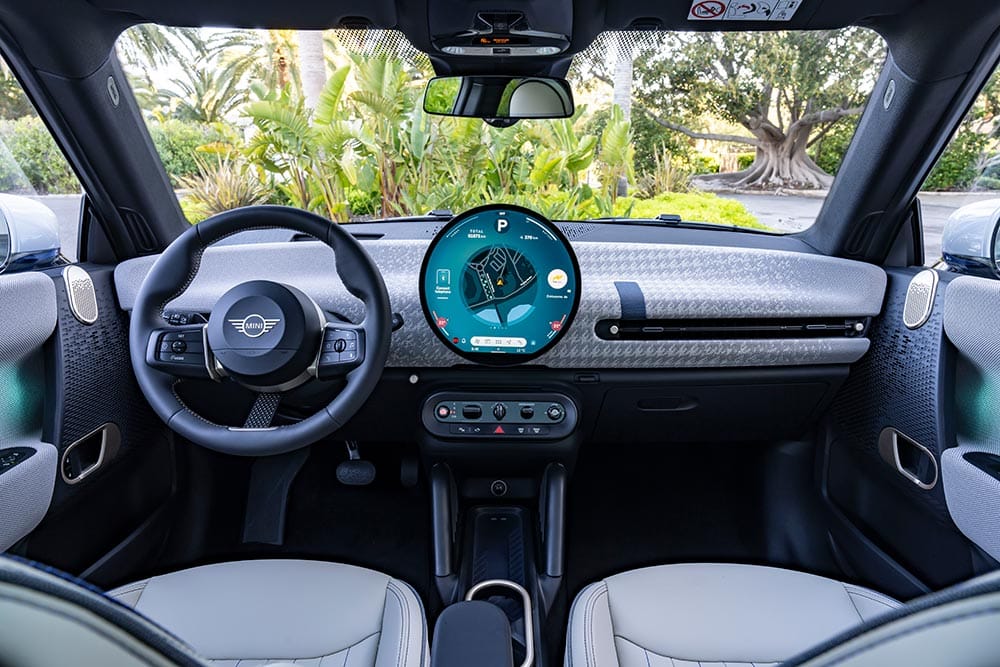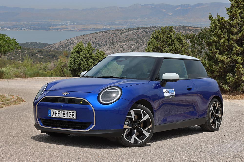 Εμφανισιακά πάντως, θα πρέπει να είσαι «αετομάτης» για να εντοπίσεις τις διαφορές ηλεκτρικού – βενζινοκίνητου. Ποιες είναι αυτές; Πρώτη και κυριότερη η κλειστή μάσκα, ακολουθούμενη από την έλλειψη εξατμίσεων, το διαφορετικό σχέδιο στις ζάντες αλουμινίου (χρειάζονται οι 17άρες της επόμενης έκδοσης από τη βασική, οι 18άρες του δικού μας όχι τόσο) και το πράσινο, eco friendly, χρώμα στα «S» μπροστά-πίσω. Από εκεί και πέρα, η γνώριμη και πολύ καλαίσθητη εικόνα με τα κυκλικά φανάρια εμπρός, την πολύγωνη μάσκα, τα LED στο μοτίβο της βρετανικής σημαίας πίσω, τη διχρωμία αμαξώματος-οροφής (προαιρετική επιλογή) και γενικότερα, όλα τα στοιχεία της σχεδιαστικής ταυτότητας Characteristic Simplicity που διέπουν τα Mini.