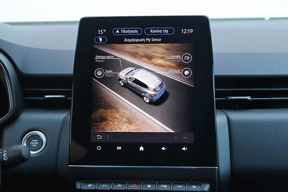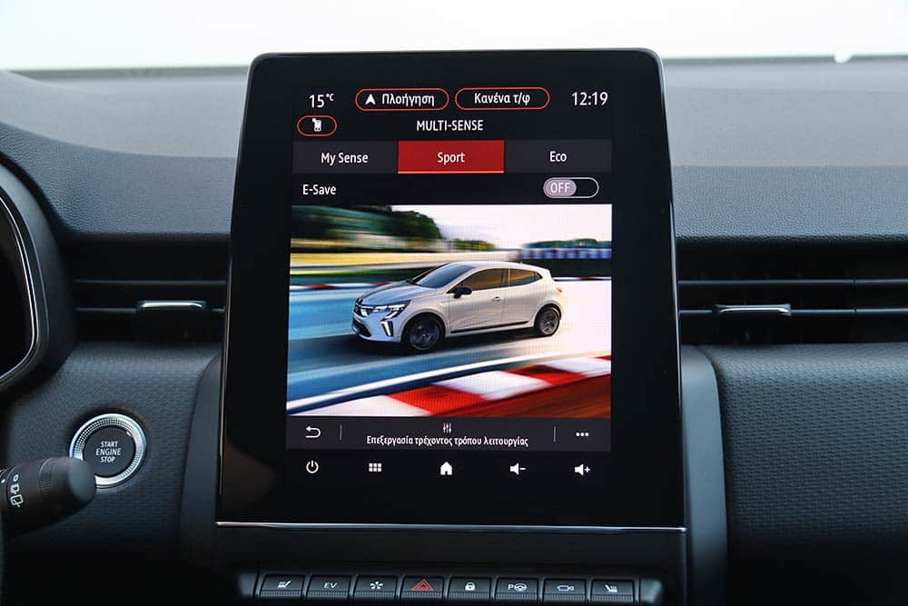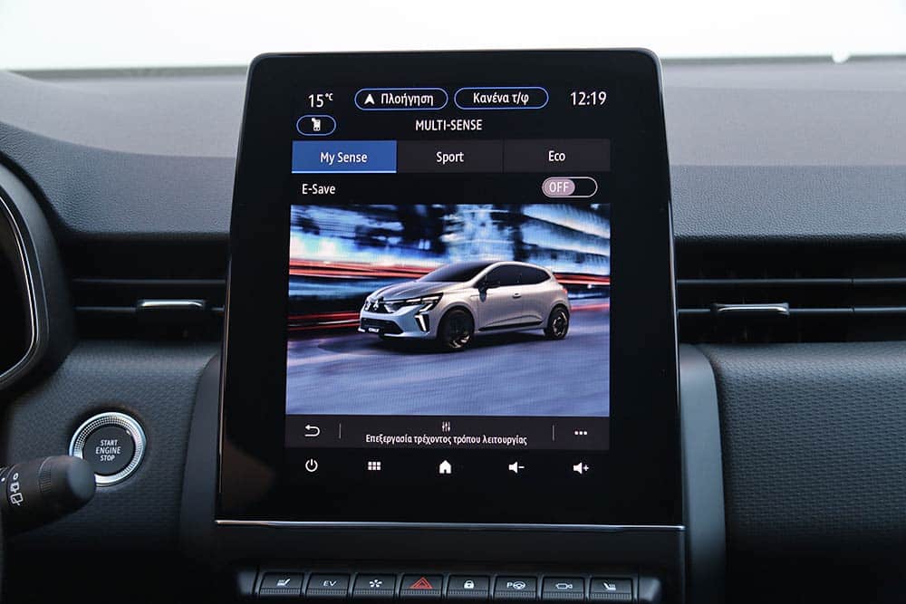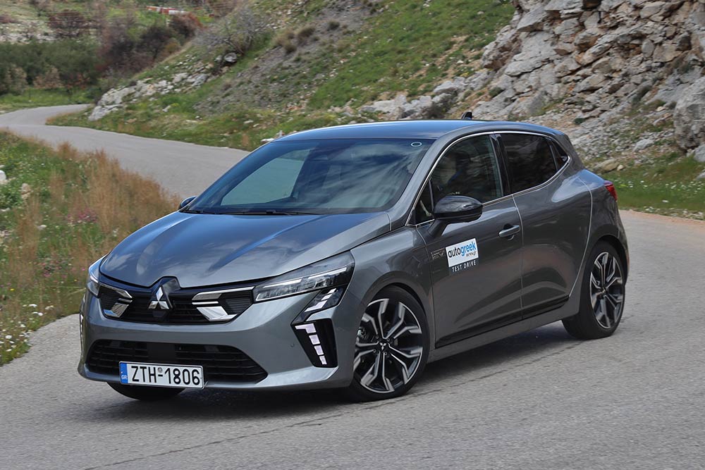 Ίδια ακριβώς εικόνα και στο εσωτερικό. Μόνο το σήμα στο τιμόνι και οι ονομαστικές αναφορές (μάρκα, μοντέλο) στο σύστημα πολυμέσων σου δίνουν να καταλάβεις πως εδώ είναι Mitsubishi, όχι Renault. Όλα τα άλλα είναι παρμένα απευθείας από το Clio – κάτι εξ ολοκλήρου θετικό βεβαίως, καθότι μιλάμε για μια από τις καλύτερες καμπίνες της κατηγορίας. Η οθόνη αφής των 9,3 ιντσών (7 ίντσες στις πιο κάτω εκδόσεις) δεσπόζει στο κέντρο του ταμπλό, διαθέτοντας εξαιρετικά γραφικά και εντυπωσιακό interface μεταξύ των προγραμμάτων οδήγησης. Ο ψηφιακός πίνακας οργάνων των 10 ιντσών (επίσης προαιρετικό) βελτιώνει κατακόρυφα το περιβάλλον μπροστά από τον οδηγό, ενώ το χορταστικό και μαλακό υλικό του ταμπλό παραπέμπει -κυριολεκτικά- σε αυτοκίνητο μεγαλύτερης κατηγορίας. Κάτι που δεν διστάζουν να κάνουν και οι χώροι, οι οποίοι είναι εξαιρετικοί για 4 άτομα και υπό κανονικές συνθήκες για τις αποσκευές τους, με 391 λίτρα διαθέσιμου πορτμπαγκάζ. Η μπαταρία στο full hybrid όμως κόβει πολύ χώρο, περιορίζοντας τη χωρητικότητα στα 301 λίτρα.
