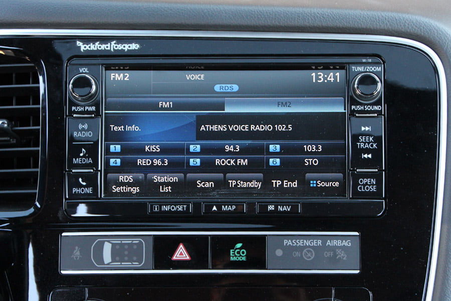 Τα υλικά που χρησιμοποιούνται σε ταμπλό και επενδύσεις είναι μαλακά και ποιοτικά, με τις δερμάτινες επενδύσεις να δίνουν τον απαραίτητο τόνο πολυτελείας. H σχεδίαση δεν κρύβει τα χρόνια της, ειδικά στα γραφικά και το interface του συστήματος πολυμέσων. Όμως η ουσία του Outlander PHEV κρύβεται κάτω από αυτά.