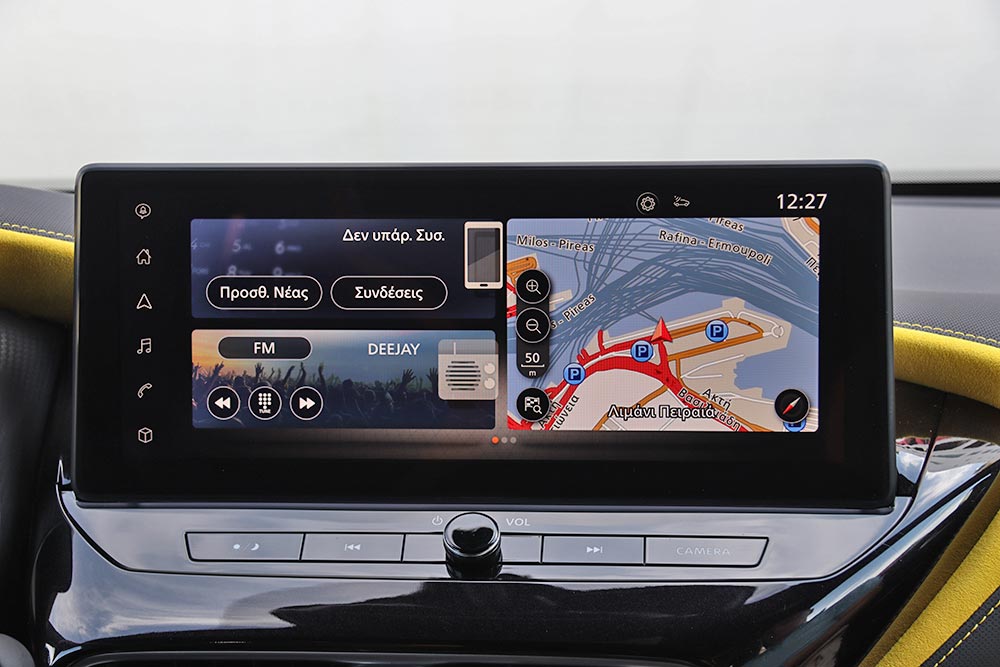 Το δεύτερο -και κυριότερο- σημείο που κεντρίζει τα βλέμματα, είναι η νέα οθόνη των 12,3 ιντσών στην κορυφή του ταμπλό για το σύστημα πολυμέσων. Σημαντικά μεγαλύτερης διάστασης από του προηγούμενου Juke (8 ίντσες) και με αναβαθμισμένα γραφικά, ανεβάζει επίπεδο τόσο το διάκοσμο όσο και την ψηφιακότητα της καμπίνας. Ψαγμένη αλλαγή και η αντικατάσταση της κάμερας οπισθοπορείας των 0,3 megapixel, με μια πολύ ευκρινέστερη 1,3 megapixel. Στο κορυφαίο N-Sport παίρνεις δερμάτινες επενδύσεις και διάφορες λεπτομέρειες (ταμπλό, ραφές, προσκέφαλα) στο χρώμα του αμαξώματος, μαζί με μπάκετ καθίσματα και ηχοσύστημα της Bose. Το τελευταίο, δε, με ενσωματωμένα ηχεία στα προσκέφαλα, για την απόλυτη ακουστική εμπειρία!