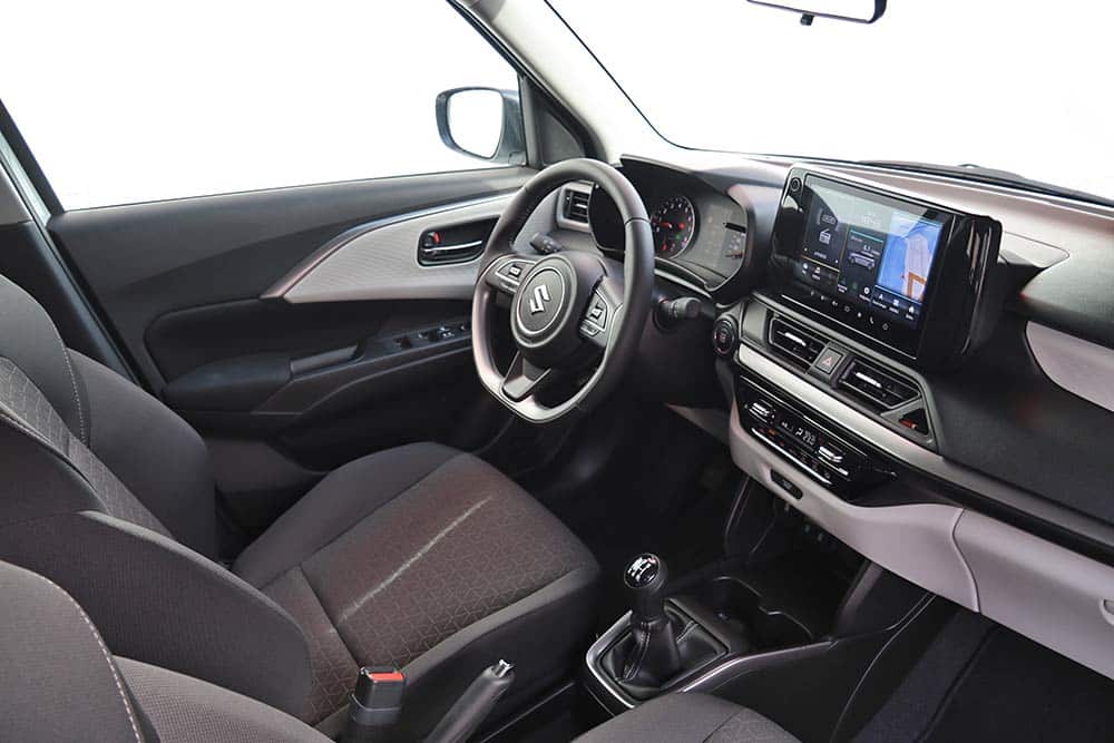 Η νέα αισθητική ταυτότητα του μοντέλου ξεδιπλώνεται στην καμπίνα επιβατών. Εκεί συναντάμε μεγάλης έκτασης διαφοροποιήσεις, καθώς ολόκληρο το ταμπλό άλλαξε και πλέον παίρνει κλίση προς τον οδηγό. Στην πραγματικότητα τα μόνα στοιχεία που διατηρήθηκαν από το προγενέστερο μοντέλο είναι το τιμόνι, ο λεβιές των ταχυτήτων και οι διακόπτες για τα ηλεκτρικά παράθυρα. Κεντρικά δεσπόζει η νέα υψηλής ευκρίνειας οθόνη των 9 ιντσών του infotainment (7 ιντσών πριν) όπου πλέον δεν είναι ενσωματωμένη στην κεντρική κονσόλα για λόγους χρηστικότητας. Υπάρχουν πολλές θύρες σύνδεσης / φόρτισης, ενώ το Suzuki Connect υποστηρίζει και ασύρματο Apple Car Play και Android Auto. Οι χώροι για μικροαντικείμενα στις πόρτες και στην κεντρική κονσόλα μαζί με λίγους φυσικούς διακόπτες για τον κλιματισμό ενισχύουν την πολύ καλή εργονομία.