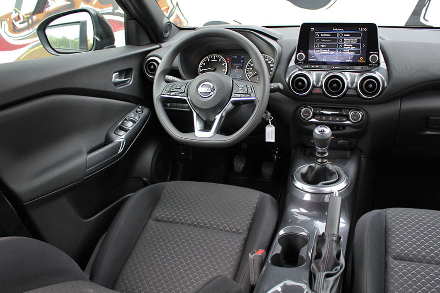 Εντελώς αλλαγμένο είναι και το εσωτερικό του ολοκαίνουργιου Juke, το οποίο είναι αισθητά καλύτερο σε ποιότητα και χώρους. Τα υλικά που χρησιμοποιούνται είναι εξαιρετικής ποιότητας στο μεγαλύτερο τμήμα ταμπλό-κεντρικής κονσόλας, λύνοντας ένα από τα μεγαλύτερα ζητήματα της πρώτης γενιάς. Η σχεδίαση παραπέμπει σε σπορ crossover, με τους τριπλούς κυκλικούς αεραγωγούς στο κέντρο του ταμπλό να δίνουν τον τόνο.