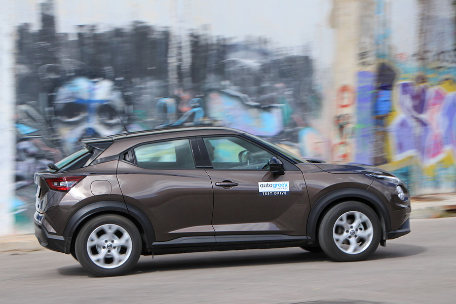 Γόνατα ΜακΦέρσον εμπρός και ημιάκαμπτος πίσω συνεργάζονται ιδανικά, με το μπροστινό να χαίρει αμεσότητας και την ουρά να συνδράμει με αρκετή συμμετοχή. Το Juke δεν διστάζει να πλασαριστεί, ακόμα και να «γυρίσει» ελαφρώς, πάντα με μέτρο και ευγενικές κινήσεις στο τιμόνι καθώς το ESP καραδοκεί. Το τιμόνι είναι μια ιδέα πιο βαρύ από όσο θα ήθελε κανείς, ενώ ο λεβιές κάποιες φορές εμφανίζει μια διστακτικότητα, όμως αλλαγή δεν πρόκειται να χάσεις. Τα ταμπούρα πίσω μόνο οπτικά χαλάνε το αποτέλεσμα, καθότι από πλευράς απόδοσης και αίσθησης πεντάλ το σύστημα πέδησης είναι άμεμπτου κριτικής.