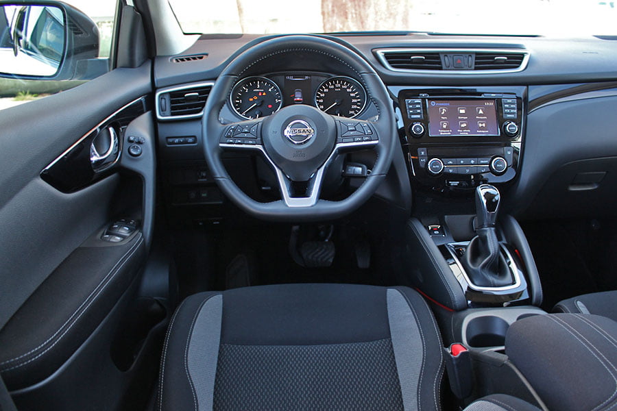 Το εσωτερικό του Nissan Qashqai ικανοποιεί πλήρως με την ποιότητά του. Είναι προσεγμένο και αναβαθμίζεται σημαντικά από τη χρήση μαλακού υλικού στο ταμπλό, τόσο στο πάνω μέρος του, όσο και πιο χαμηλά. Η θέση οδήγησης έχει μεγάλο εύρος ρυθμίσεων, η εργονομία είναι μελετημένη και δεν απαιτείται μεγάλο διάστημα εξοικείωσης, ενώ η περιμετρική ορατότητα είναι πολύ καλή. Από πλευράς χώρων, το εσωτερικό του Qashqai είναι σε θέση να φιλοξενήσει 4 ενήλικες άνω του μεσαίου αναστήματος, αφού στο πίσω κάθισμα θα βολευτούν χωρίς ιδιαίτερο πρόβλημα μέχρι τρεις ενήλικες μεσαίου αναστήματος. Χώροι για μικροαντικείμενα υπάρχουν αρκετοί και σε επίκαιρες θέσεις, ενώ ο χώρος αποσκευών με το διπλό δάπεδο και το μεγάλο άνοιγμα έχει χωρητικότητα 430 λίτρα.