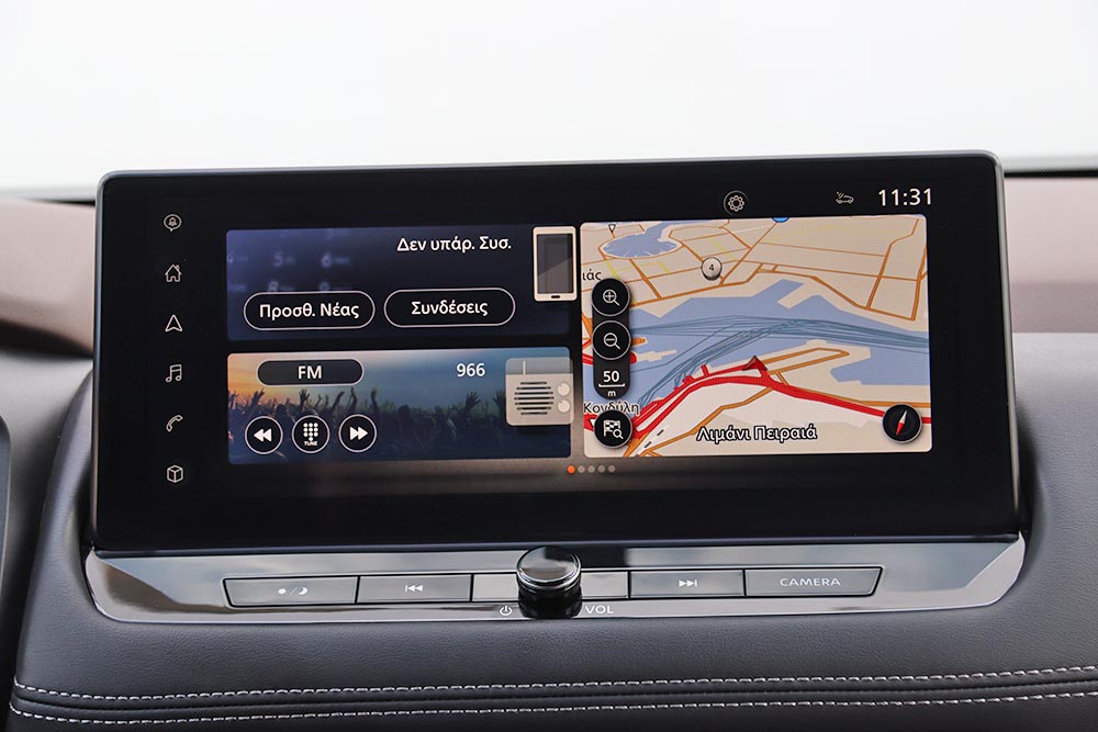 Αν κλείσεις τα μάτια σε κάποιον, τον βάλεις στην καμπίνα και του τα ανοίξεις, δίχως να αναφέρεις μοντέλο ή μάρκα, το πιθανότερο είναι να σου πει πως βρίσκεται σε κάποιο premium SUV. Ειδικά στη συγκεκριμένη έκδοση, με την πανοραμική ηλιοροφή, τις δερμάτινες επενδύσεις, τη λάκα στον επιλογέα ταχυτήτων και την πολύ πειστική απομίμηση ξύλου στην κεντρική κονσόλα, το X-Trail πλημμυρίζει τα αισθητήρια όργανα με αύρα πολυτέλειας. Το ίδιο ισχύει για τα εξαιρετικά συναρμολογημένα και ποιοτικότατα σε αφή πλαστικά, που δεν κάνουν διαχωρισμούς στο πού βρίσκονται (ταμπλό, πόρτες, χαμηλά ή ψηλά δηλαδή).