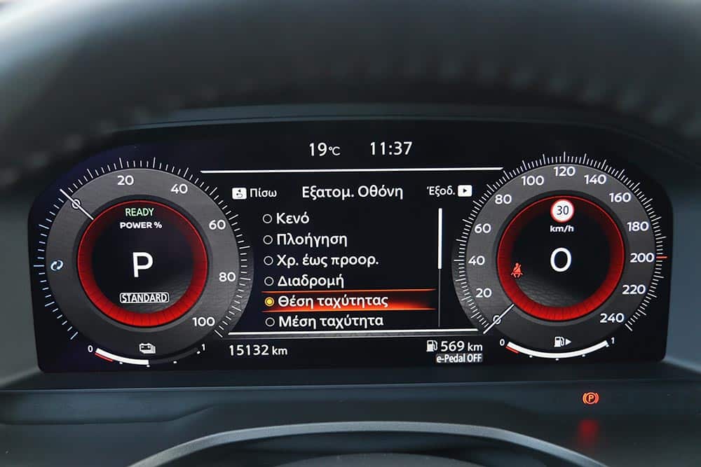 Οι δυο οθόνες των 12,3 ιντσών (μια για το ψηφιακό καντράν, μια για το infotainment) συνεισφέρουν τα μάλα στην ψηφιακή απήχηση του εσωτερικού, το οποίο ωστόσο δεν αμελεί την εργονομία. Οι φυσικοί διακόπτες για τον έλεγχο του κλιματισμού και του ηχοσυστήματος σού λύνουν τα χέρια, αφήνοντας την περιήγηση στα καλοσχεδιασμένα γραφικά του μενού για το όταν περιμένεις στο φανάρι. Ιδιαίτερα ευπρόσδεκτες οι ευμεγέθεις ποτηροθήκες και ο ακόμα μεγαλύτερος χώρος κάτω από το υποβραχιόνιο, που ξεκουράζει ιδανικά το δεξί χέρι.