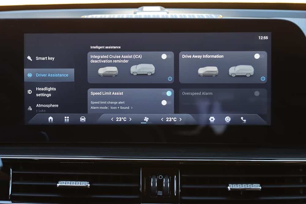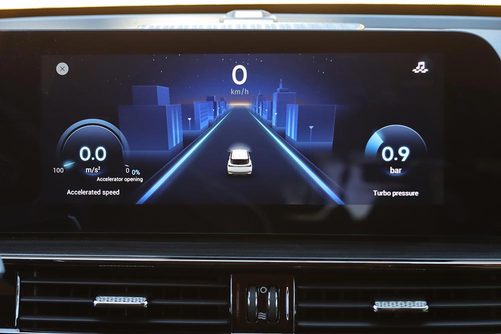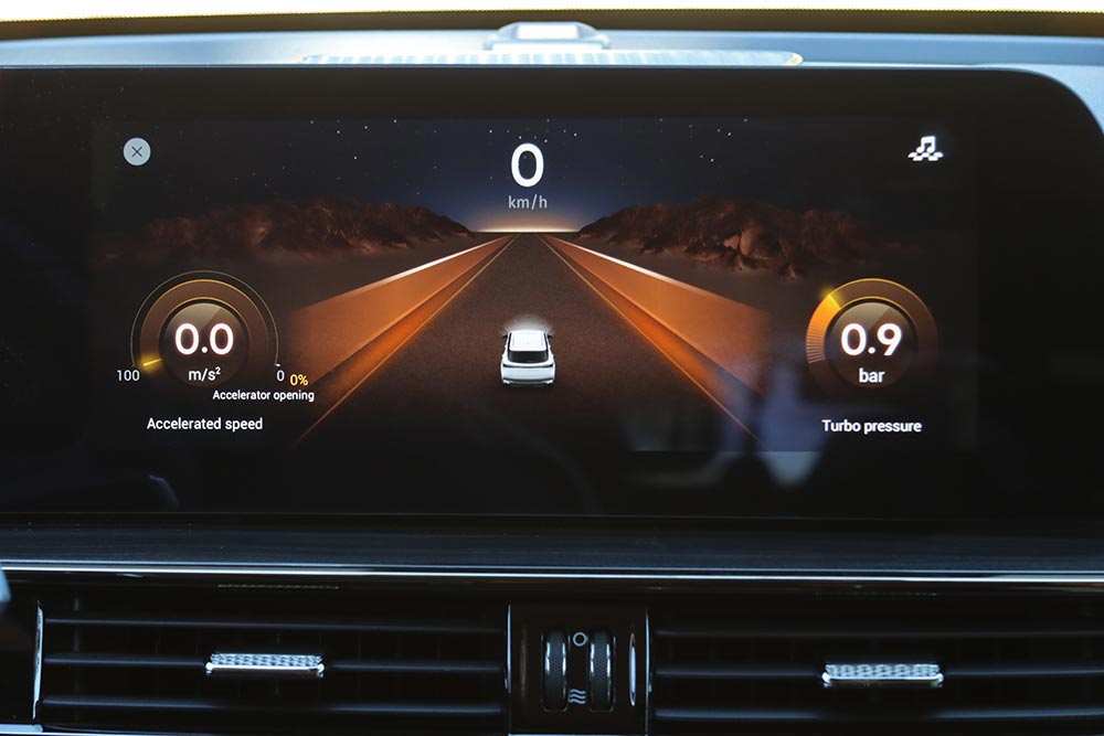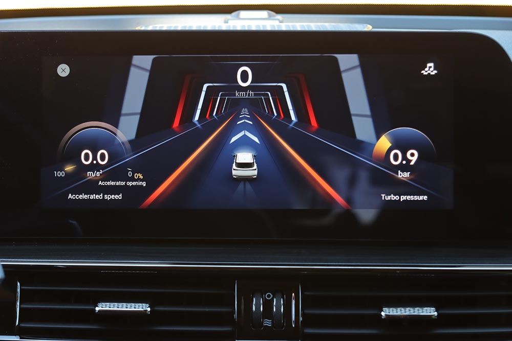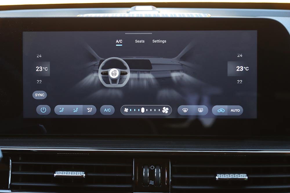 Μπαίνοντας στην καμπίνα, η πρώτη εντύπωση είναι ότι μιλάμε για ένα αυτοκίνητο που ξέρει τον ανταγωνισμό και προσαρμόζει τα ατού του προς όφελος του ιδίου. Τα υλικά είναι «αφρός» στο πάνω μέρος, οι επιφάνειες έχουν προσεγμένη συναρμογή και ο διάκοσμος με τις φωτιζόμενες λεπτομέρειες ανεβάζει την αίσθηση πολυτέλειας. Δύο μεγάλες οθόνες 12,3 ιντσών σχηματίζουν ένα ενιαίο πάνελ που θυμίζει premium γερμανικά μοντέλα, με την αριστερή να λειτουργεί ως ψηφιακός πίνακας οργάνων και τη δεξιά για το infotainment με πλοήγηση, Android Auto/Apple CarPlay και πολλές online υπηρεσίες. Μπόνους η απομίμηση ξύλου στην κεντρική κονσόλα, την οποία θα ζήλευαν ακόμα και γερμανικά μοντέλα σε ποιότητα υφής…