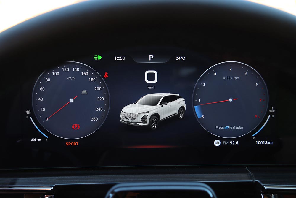 Κάτω από το καπό δεν συναντάμε κάποιο υβριδικό σύνολο, ούτε καν mild, αλλά έναν πατροπαράδοτο τετρακύλινδρο τούρμπο βενζινοκινητήρα. Ο 1.6 T-GDI παράγει 147 ίππους στις 5.500 σ.α.λ. και 275 Nm διαθέσιμα από χαμηλά, μόλις στις 1.750 σ.α.λ., προσφέροντας γεμάτο τράβηγμα από τη μεσαία κλίμακα του στροφομέτρου και δείχνοντας όρεξη για στροφάρισμα, άσχετα που δεν χρειάζεται. Τζάμπα ντεσιμπέλ θα εισπράξεις, από ένα μοτέρ που γενικά είναι ήσυχο και πολιτισμένο. Τα 10,1 δλ. που ανακοινώνει η Omoda για το 0-100 χλμ./ώρα φαίνονται πολλά, βάσει της αίσθησης που αποκομίζεις, ενώ αντίθετα τα 7,0 λίτρα/100 χλμ. μέσης εργοστασιακής κατανάλωσης λίγα.
